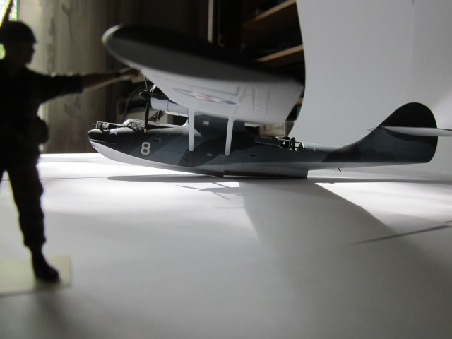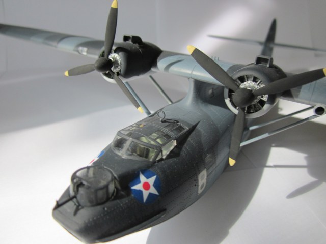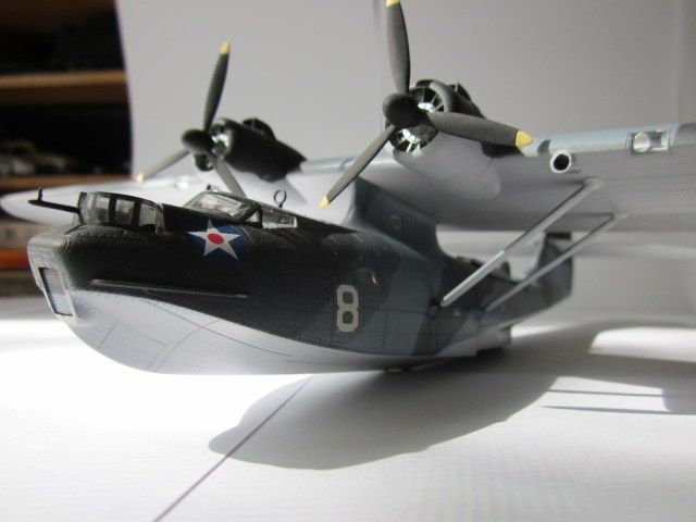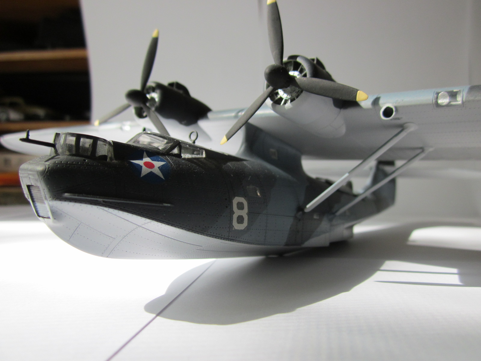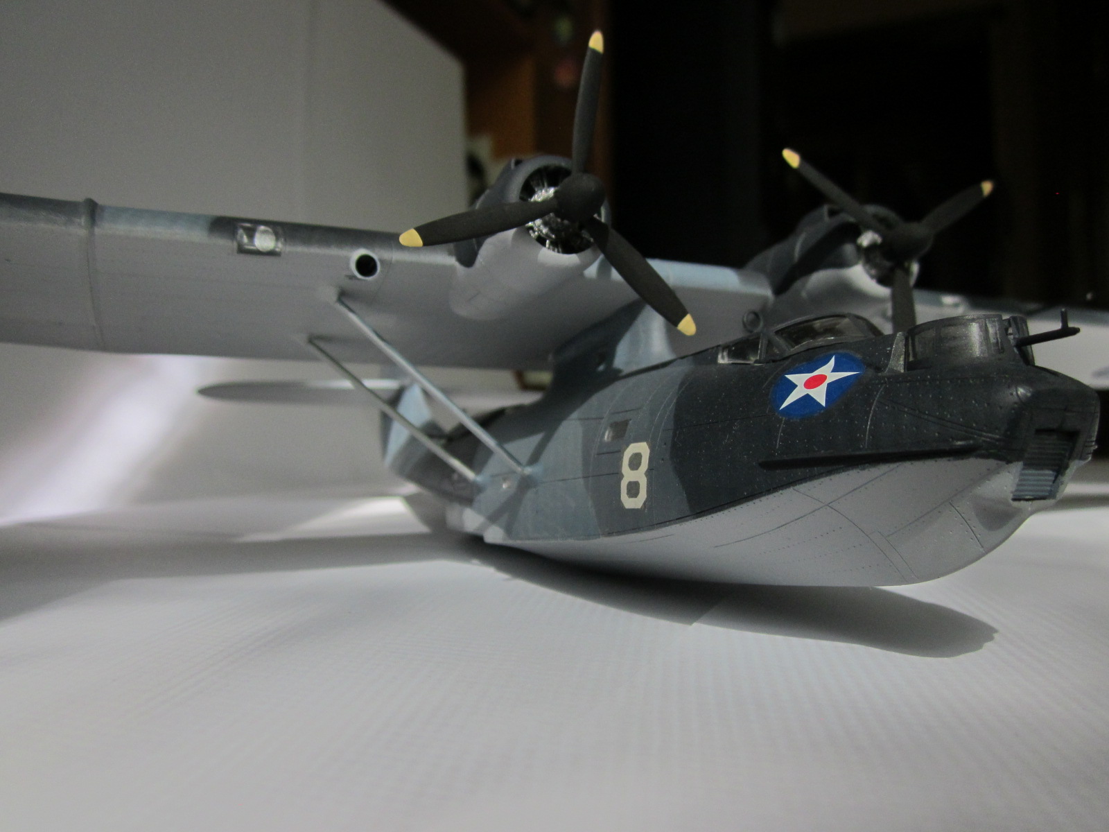 Всем привет! Думаю всем знакомый набор от Академи PBY-2. Позволяет построить PBY-4. Чем я и воспользовался. Согласно инструкции тот самый борт №8, который вывез генерала Мак Артура с Филиппин в Австралию. Понравилась окраска. Покрасил в соответствующие цвета, которые использовались USN в то время. На сайте уже представлена такая Каталина, но я решил все-таки сделать такую же. Красил аэром JAS1113, краска акрил Валехо. Тапки и табуретки приветствуются) Мой старый Canon A1200 что смог сделал.