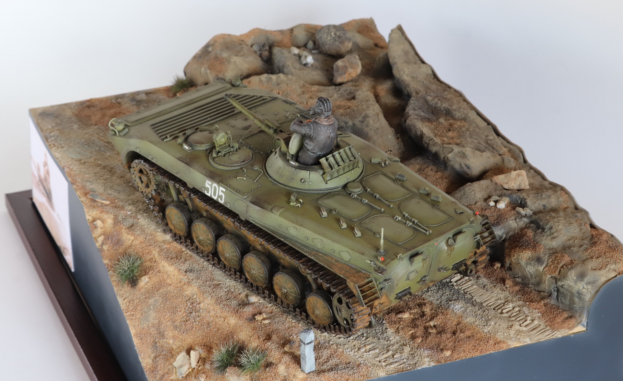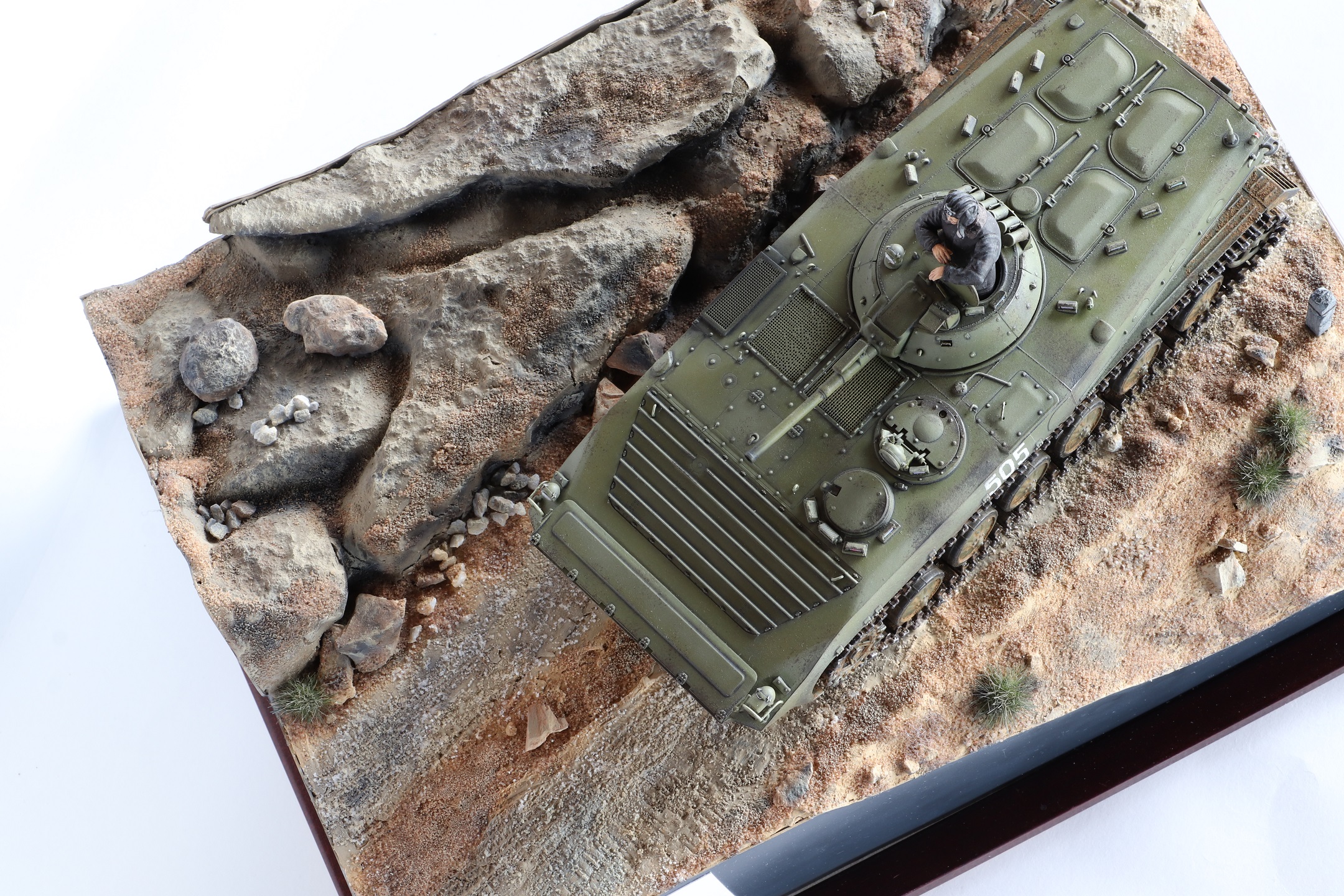 Представляю на Ваш суд БМП-1 от Trumpeter. Продолжаем осваивать премудрости масштабного мира. Модель делалась в подарок родственнику в память о службе и участии в боевых действиях в Осетии в 1991 - 92 г. Основой стала фотография из его альбома, размещенная на основании.