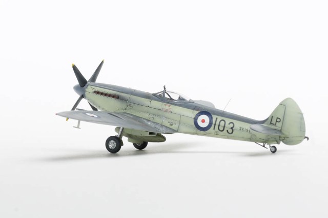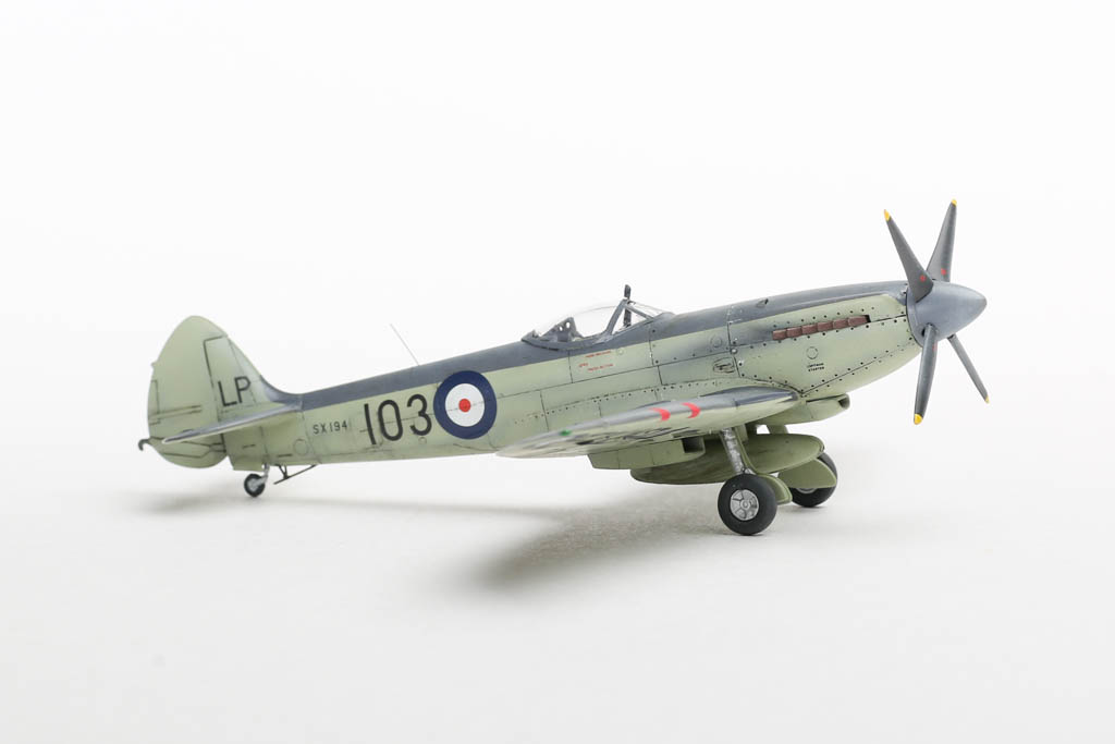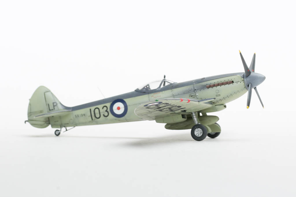 Модель Сворд - типичный ЛНД спитфайр с новым фюзеляжем. В РН встроен посадочный гак. Шпаклевка нужна в районе центроплана ближе к передней кромке и при стыковке капотов Гриффона