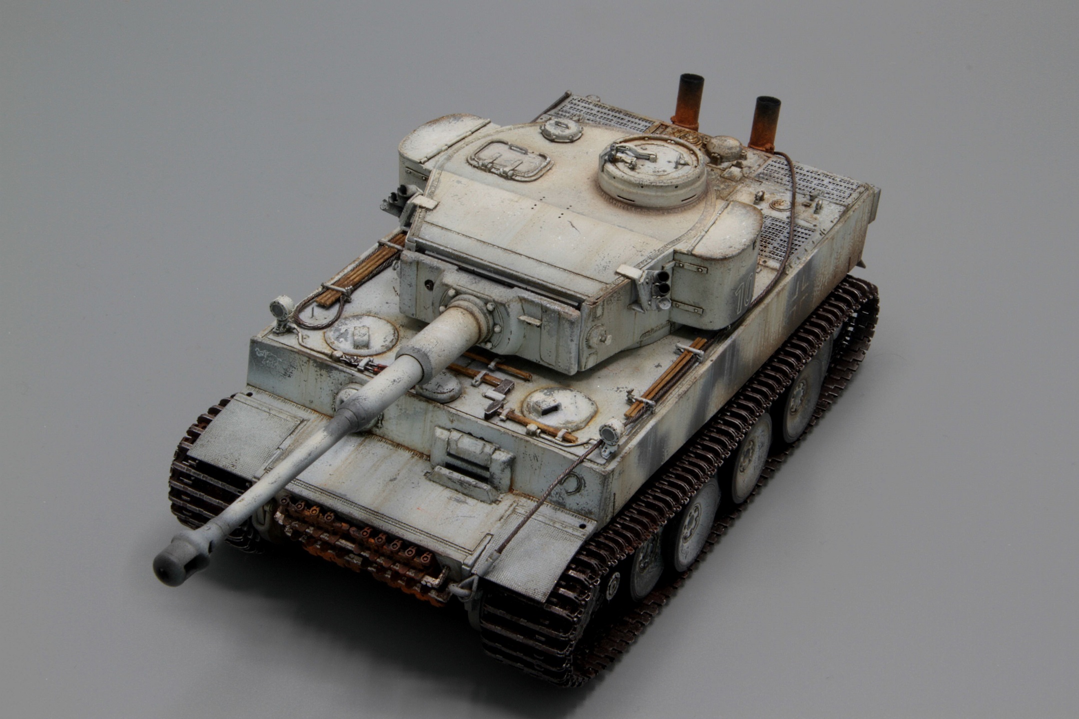 Модель (каталожный номер 5075) представляет собой раннего "ушастого" Тигра. Стыкуемость отличная, инструкция, качество отливок, все понравилось, есть немного нареканий на сборку гусениц. Инженерное решение так себе, если делать "рабочую" гусеницу, то или плохо держится в местах крепления, или наглухо приклеивается (как вариант у меня руки такие))). В общем одна гусеница у меня рабочая и она принесла довольно много проблем, вторая сразу склеена, с ней при установке проблем не было вообще. Несмотря на маркировку конкретной машины, сотки, модель несет собирательный образ ранних тигров, так что на различия с реальным прототипом не обращайте внимания.