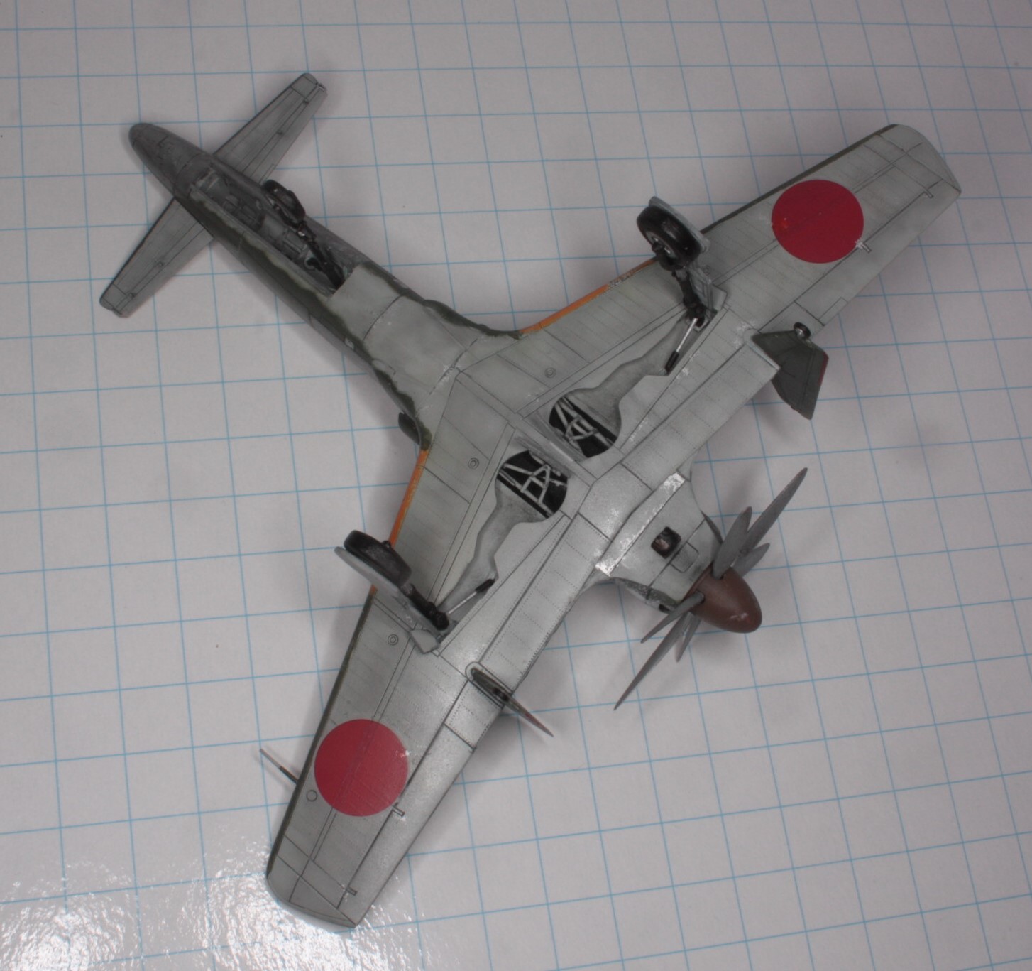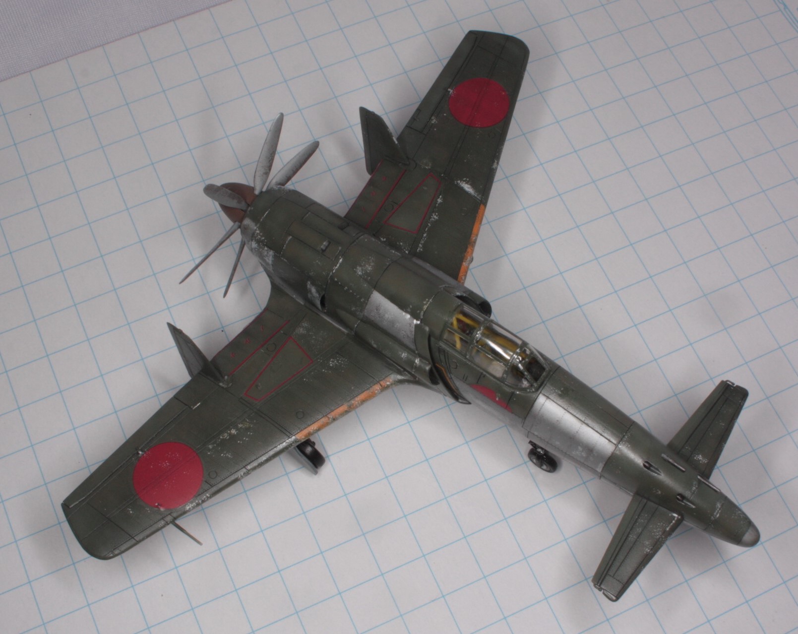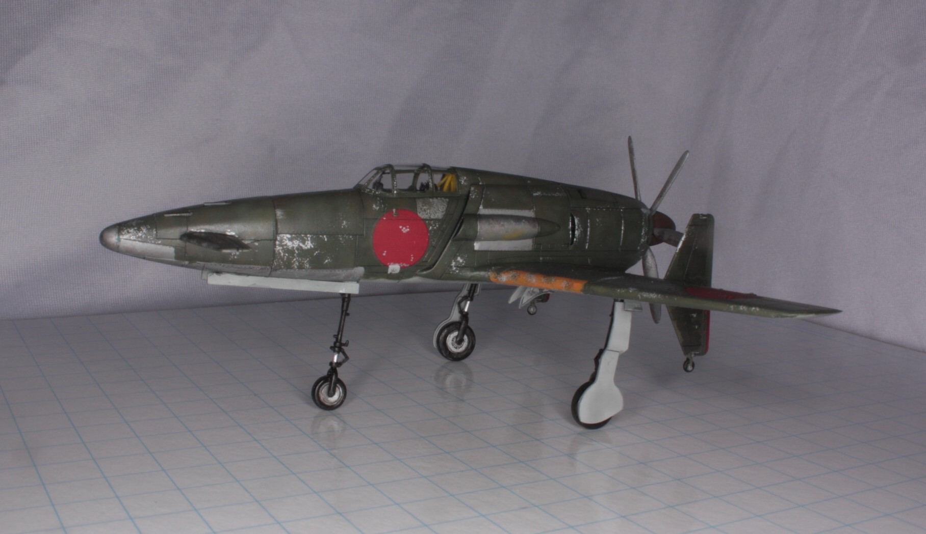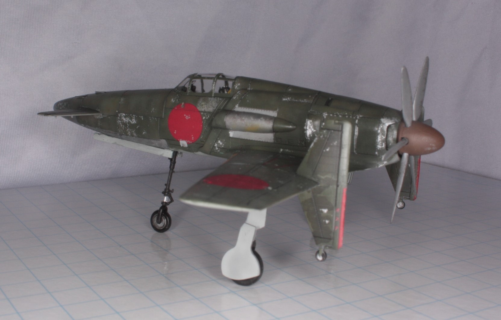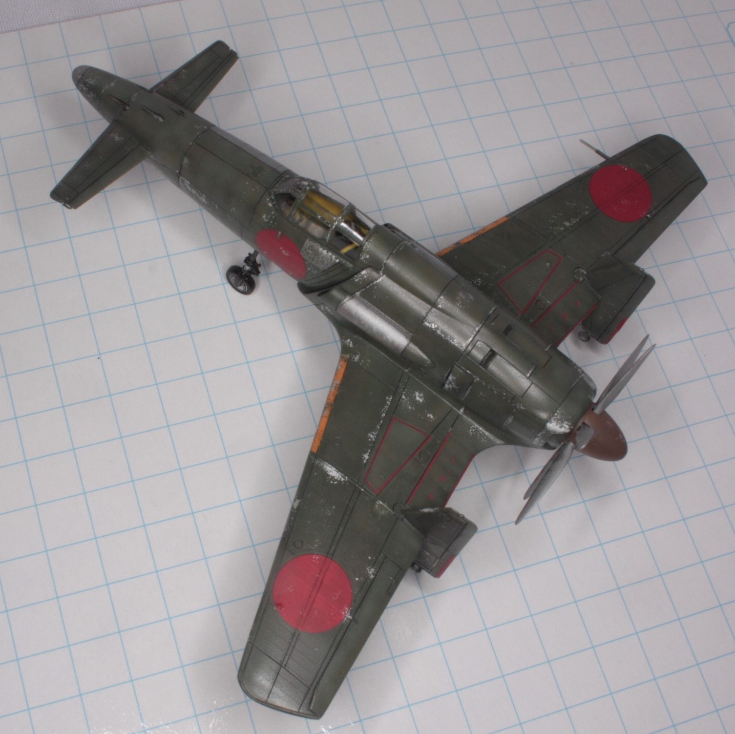 J7W Shinden по серии известных фотографий, сделанных на заводе в Фукуоке 10.10.45. Модель "из коробки", немного доработаны только ниши шасси, добавлена мелкая расшивка, выхлопной коллектор и доработаны воздухозаборники. Двигатель решил не добавлять (он на оригинале виден через ниши) из-за маленького доступного для противовеса пространства спереди и возможных проблем с балансировкой модели. Сама модель- классическая старая хасегава: отличное качество пластика и литья, но предельно бедная детализация, что равно максимальному удовольствию от сборки). Краски и смывка Tamiya. Декаль- оригинал (очень толстая, с одной стороны- легко работать, с другой- требуется несколько слоев лака с выравниванием абралоном).