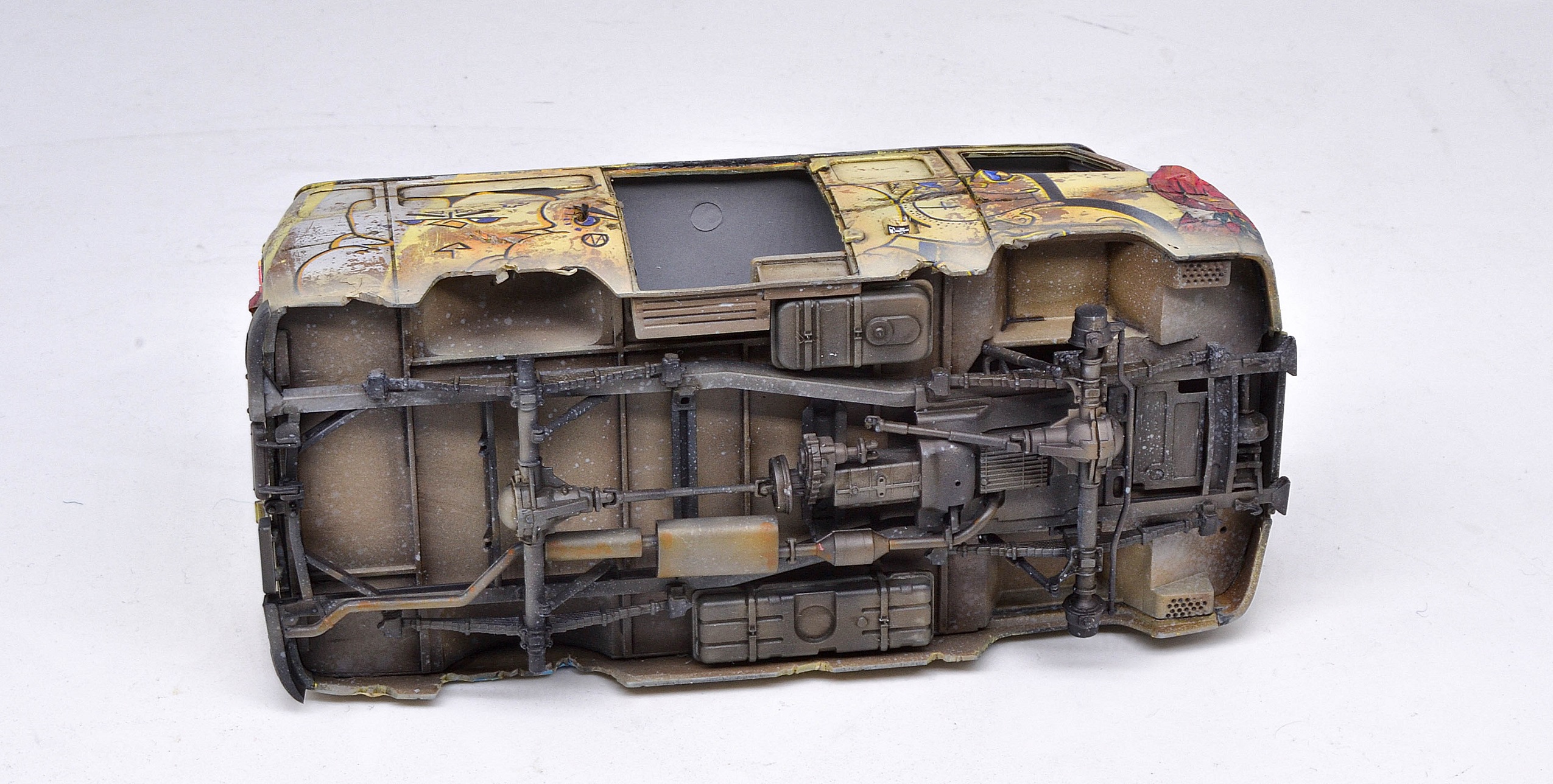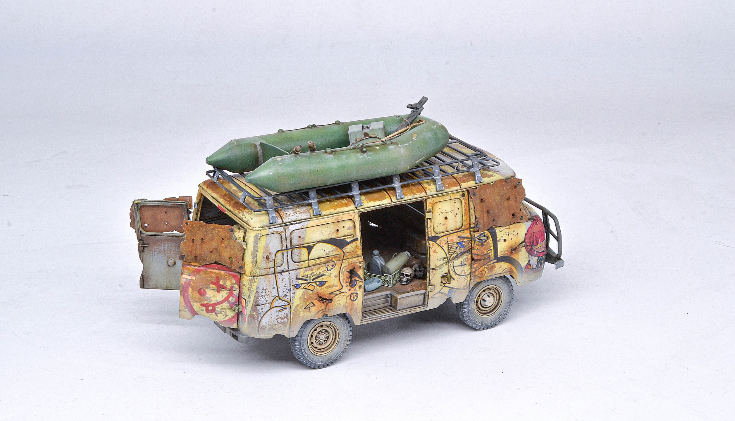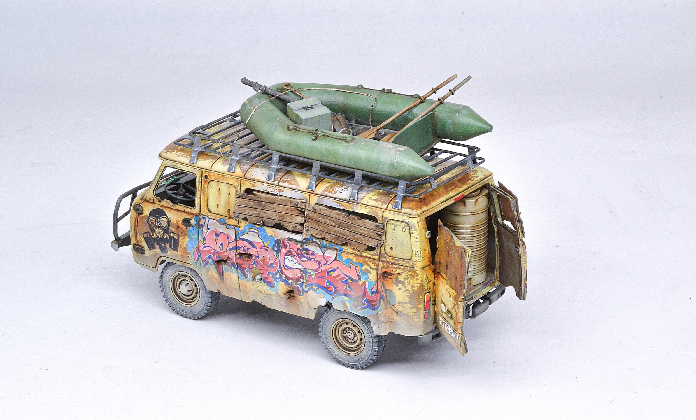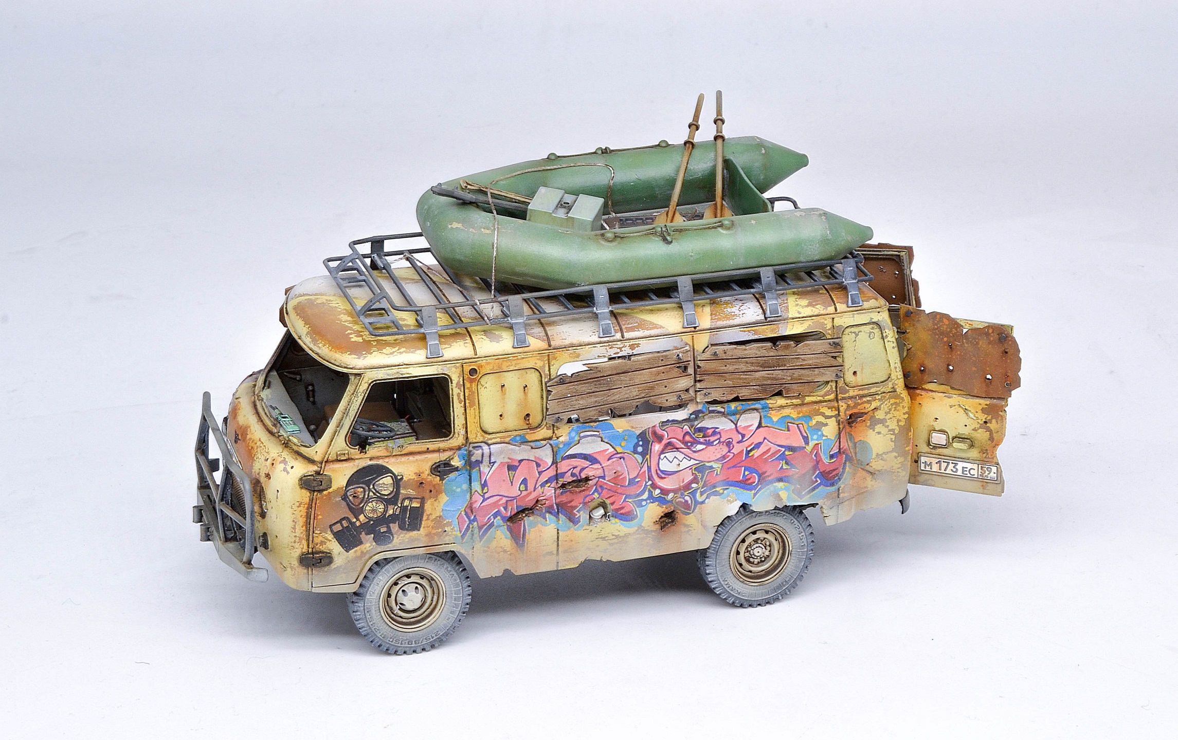 Исполнение и раскраска просто супер, а вот отсутсутвие лобового стекла (или зашитных решеток) - незачёт. Все зомби через пять минут в кабине водителя тусоваться будут, и он в качестве главного блюда.