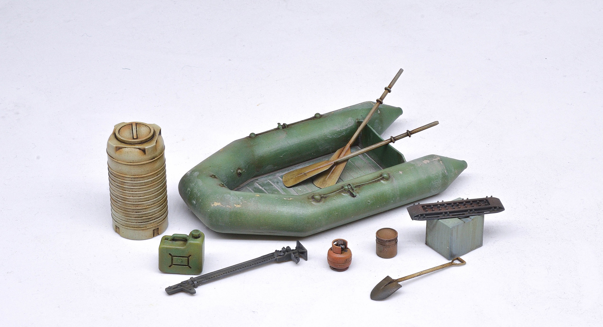 Поэтому к стандартному комплект дополнений для предзаказа 3644 Буханка Апокалипсис AM35127-S я добавил немного бытовых мелочей AM35153 (баллон газовый, термос китайский, ящик для овощей) и необходимого инструмента выживальщика AM35149 (топор, бензопила, лопата, сэнд траки).