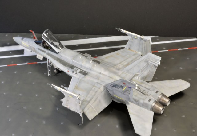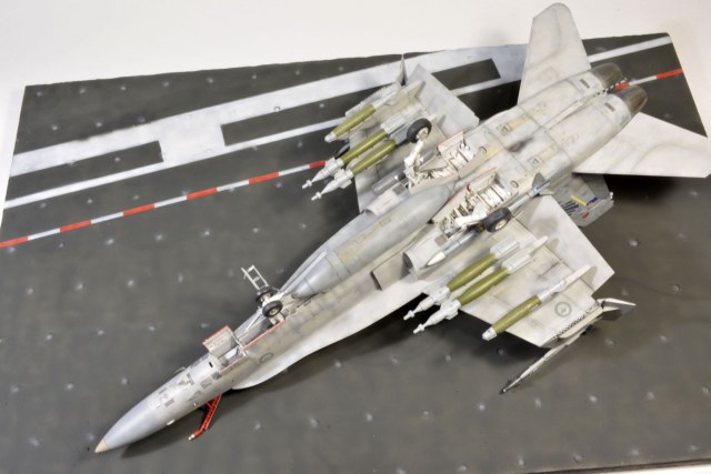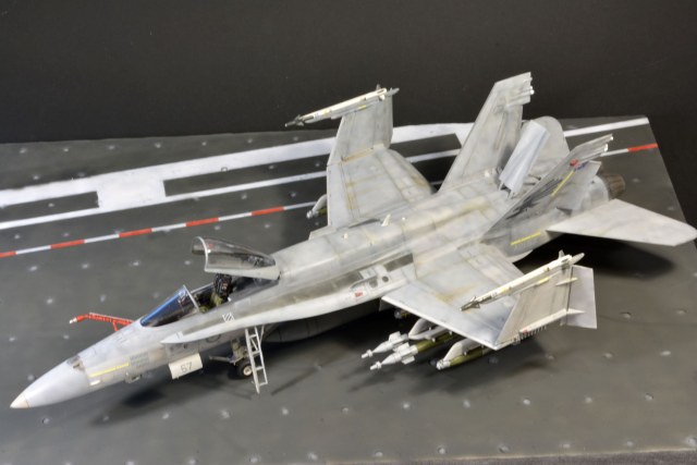 Подставку «аля палуба авианосца» изготовил из пеноплекса, так же окрасив акрилом тамия.