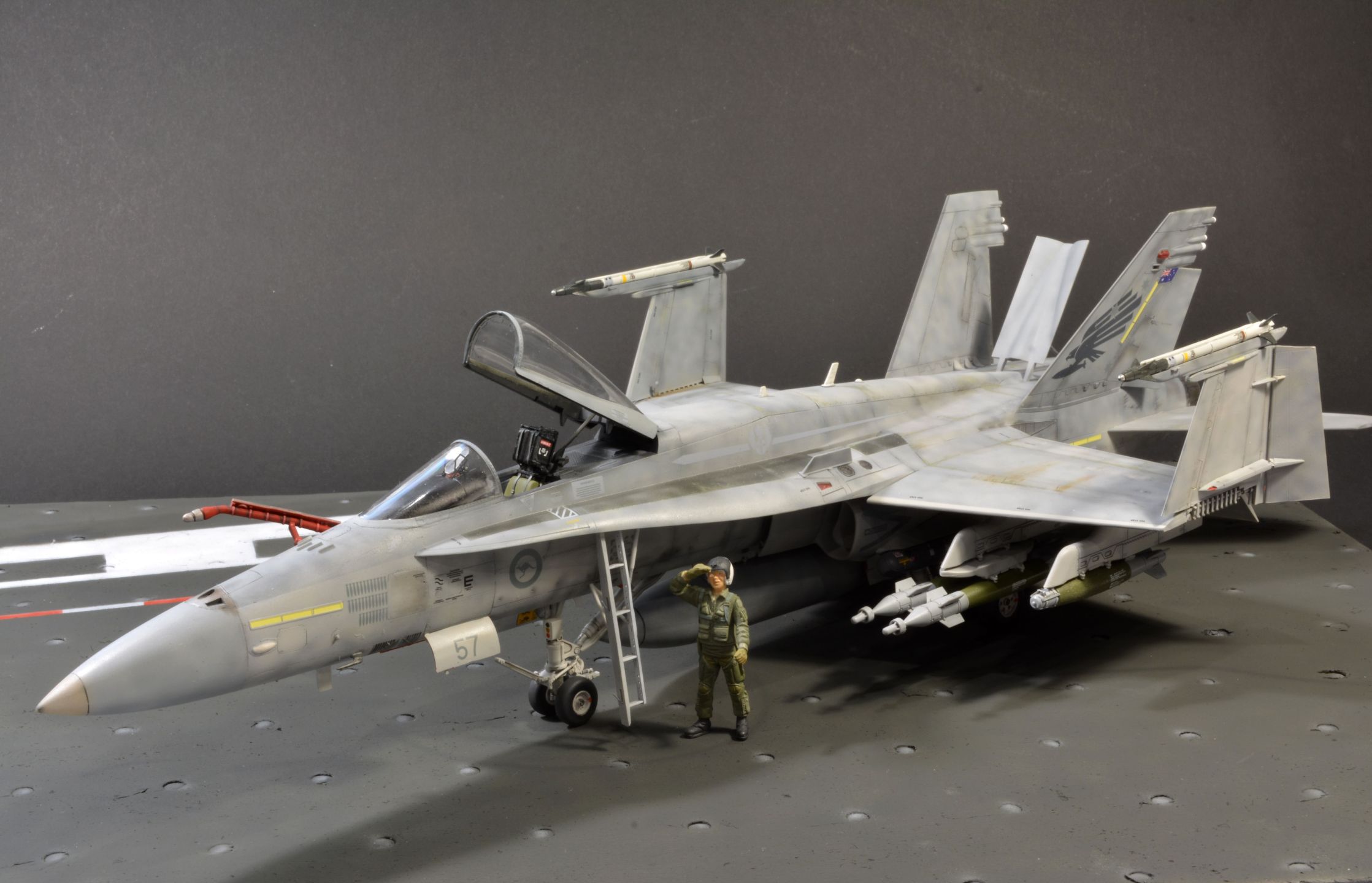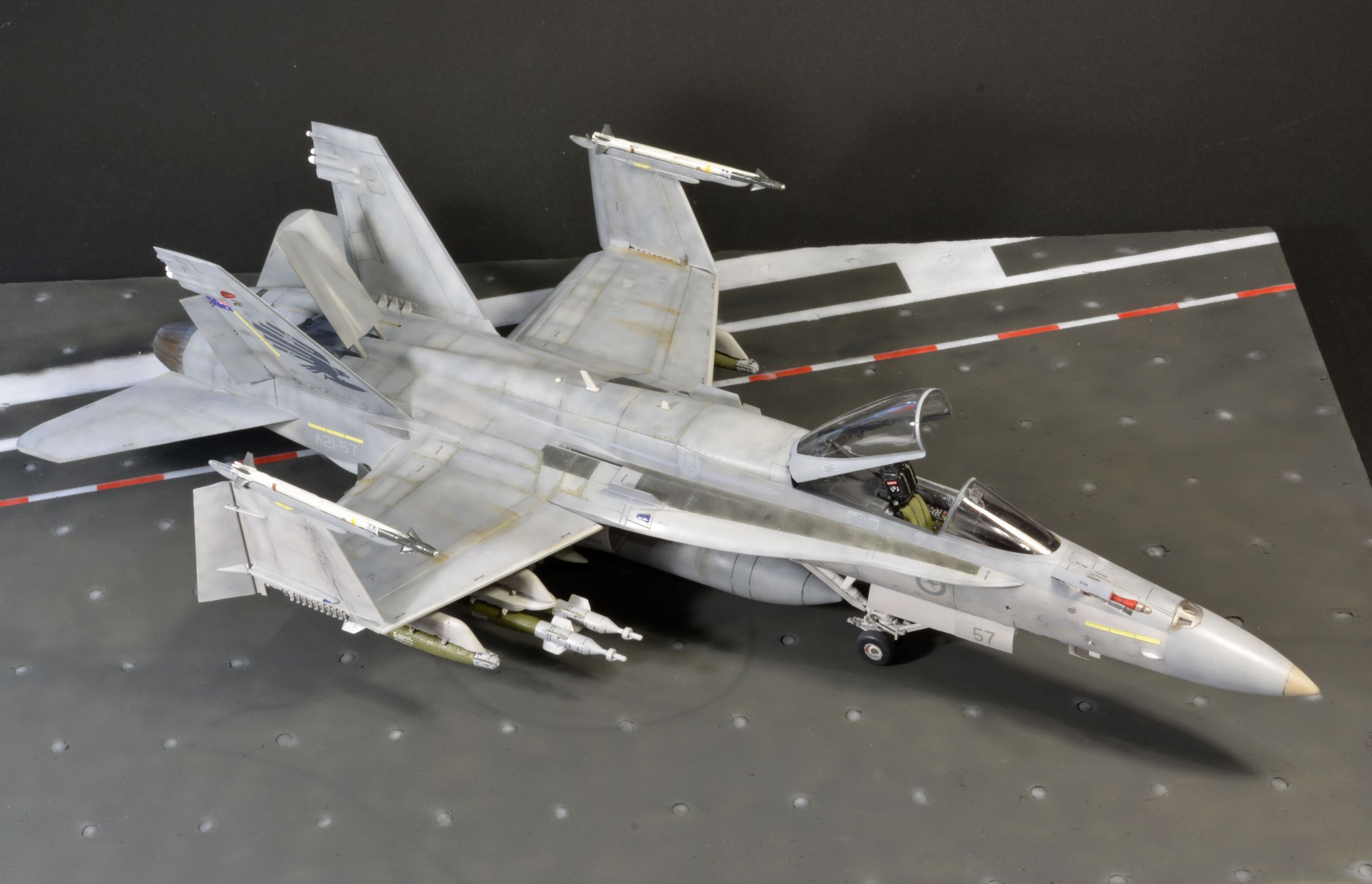 Модель F\A-18A в масштабе 1\48 от производителя Kinetic. Из коробки модель идет вполне самодостаточна, с хорошей стыкуемостью. Проблема возникла лишь в одном месте в области ВЗ, но это проблема, мне кажется, всех производителей без исключения. Кинетик дает очень такой приличный объем вариантов сборки. Много декалей на разные борта и более того можно собрать как одноместный вариант, так и спарку и все это в одном наборе!!! От стройки получил исключительно только позитивные эмоции.