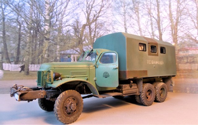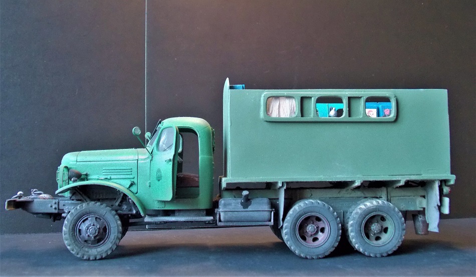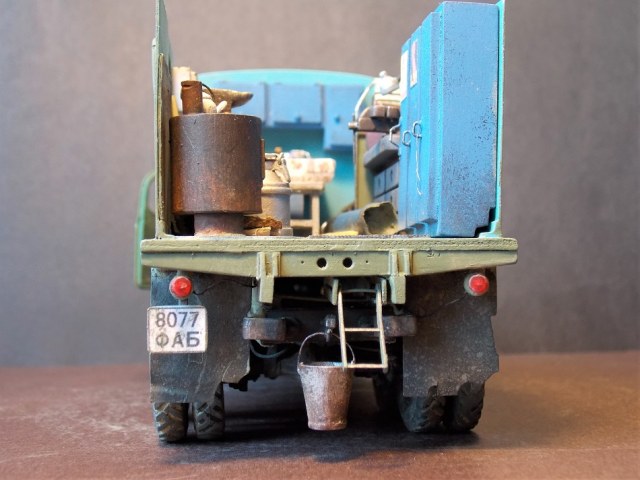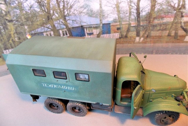 Всем доброго утра! Очень мне захотелось сделать свой первый интерьер.:)) В бортовом исполнении модель мне казалась скучной я её уже показывал года 2 назад. Сам грузовик не трогал, лишь нанёс деки на двери, КУНГ пр-ва ICM б/у. Нутрянка вся самодельная, впихнул всё что нашлось, естественно образ собирательный.:)) Результатом доволен, надеюсь вам тоже понравится, не проходите мимо!:)) Извиняюсь за качество фото, никак не совладаю с аппаратом.
