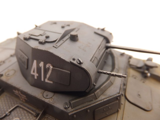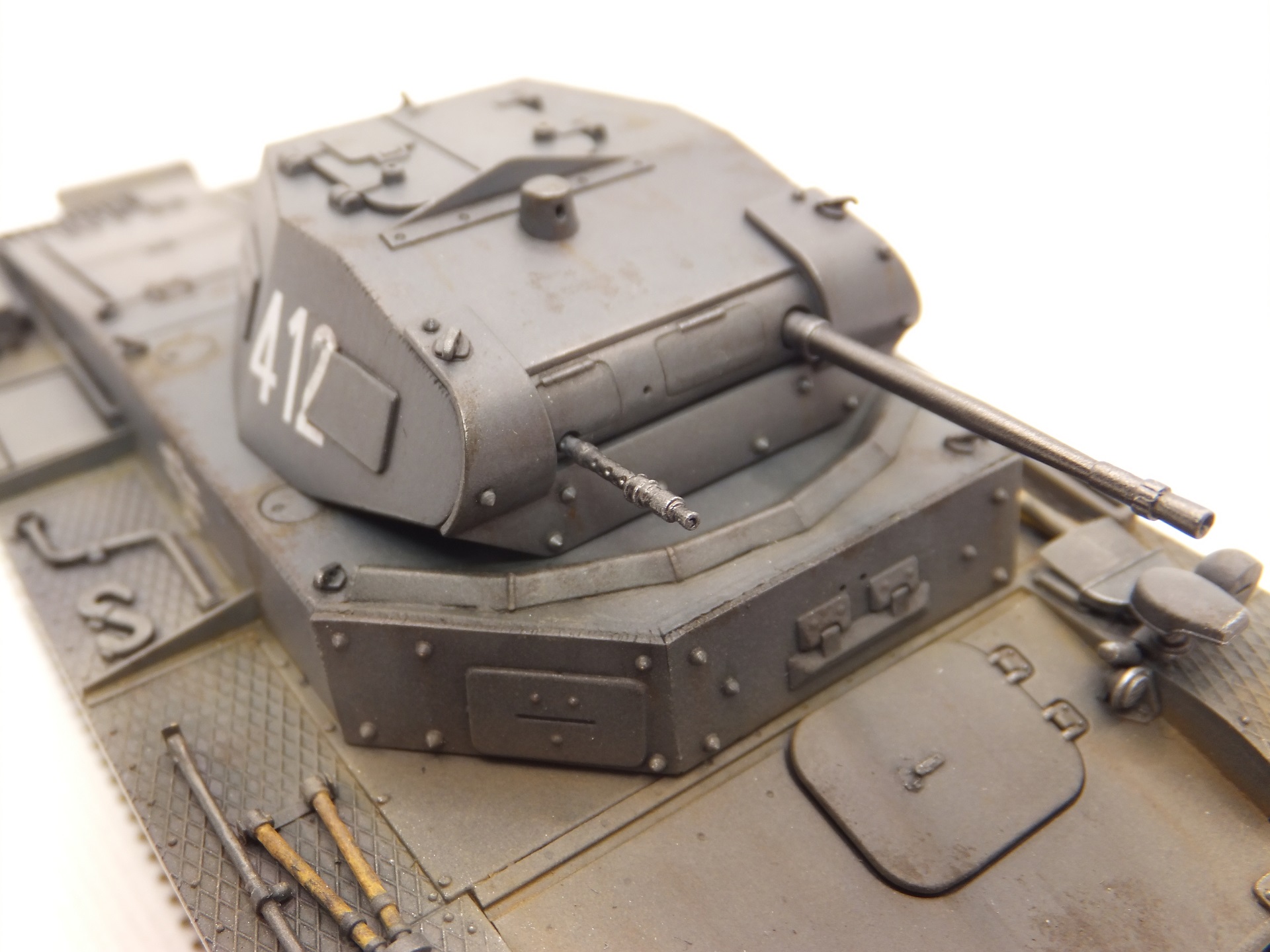 Для изкоробки сделано хорошо, не буду спорить. Но старая Тамия без доработок смотрится всегда дубово. Как минимум утонить надгусеничные полки, ребра их крепления, ещё по мелочи десятка полтора деталей. И как максимум заменить крепеж шанцевого инструмента на травление и добавить цепочки на крышки дымовых гранат.