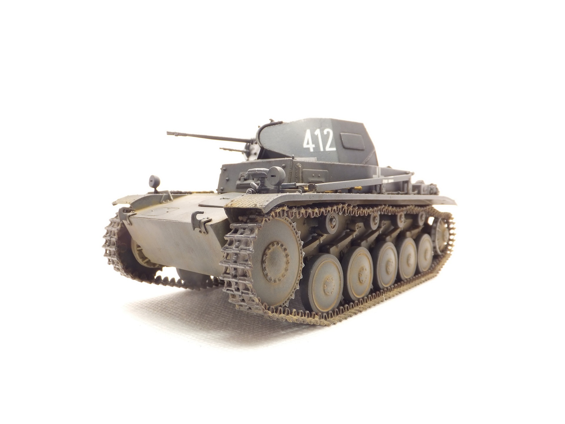 На ваш суд - модель двойки от Тамии на май 1940 г., как говорит сам производитель. Фото прототипа в сети не нашел, хотя старался. По модели все сказано и не раз, добавить нечего, я ее просто собрал, и она просто собралась. Немного разбавил травлением от Вояджера (типа защелок на ящиках, крепления огнетушителя и чурбака под домкрат, самого домкрата). Красил, высветлял, затемнял Гунзе, АК, Пасифик, припылил пигментами разных производителей.