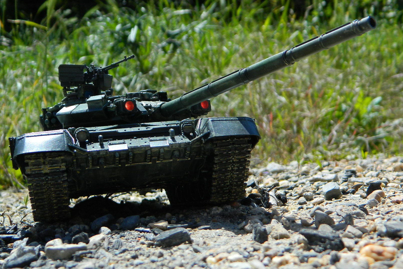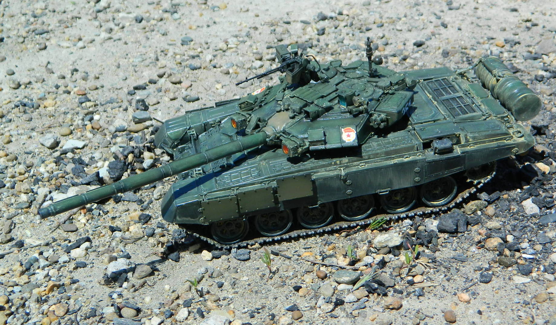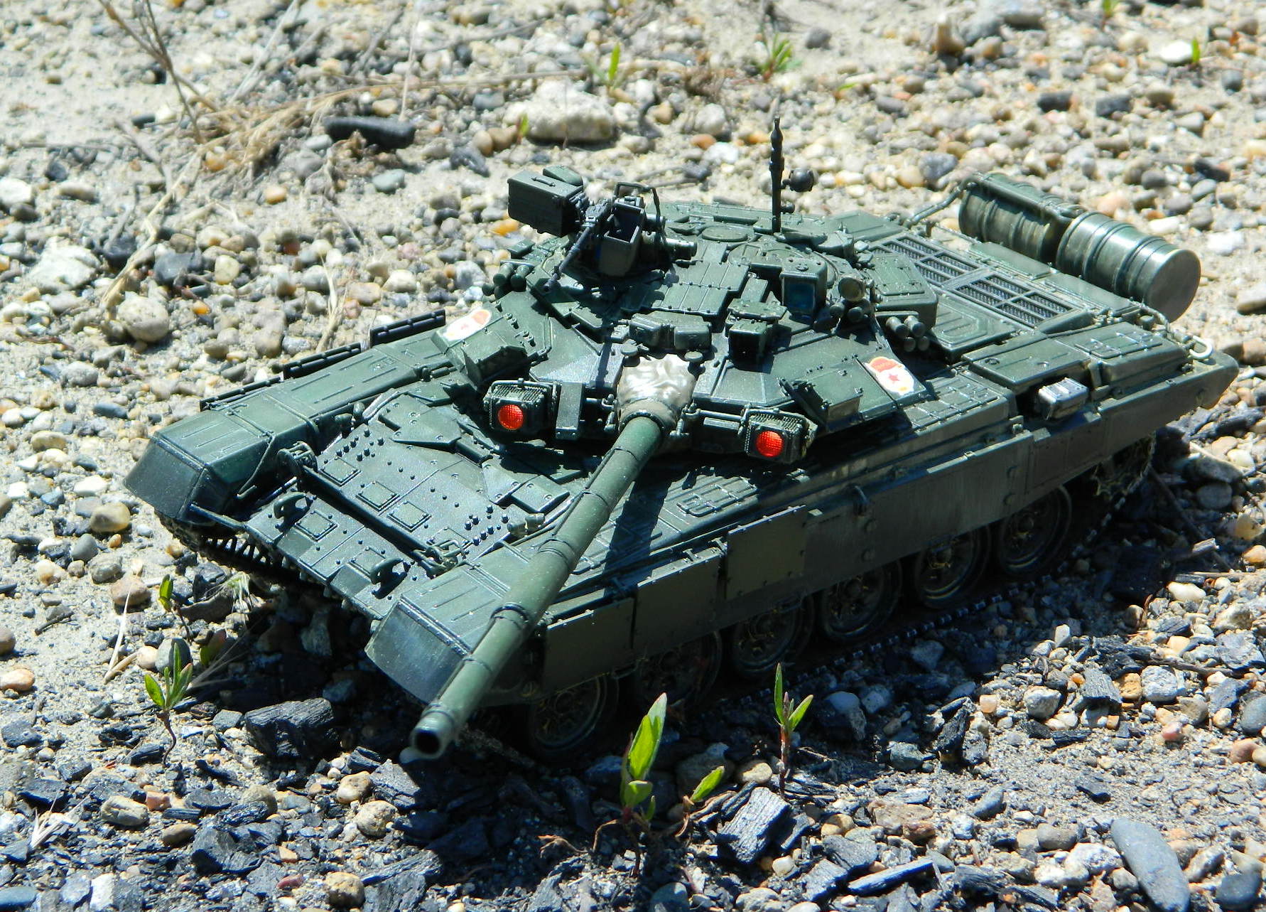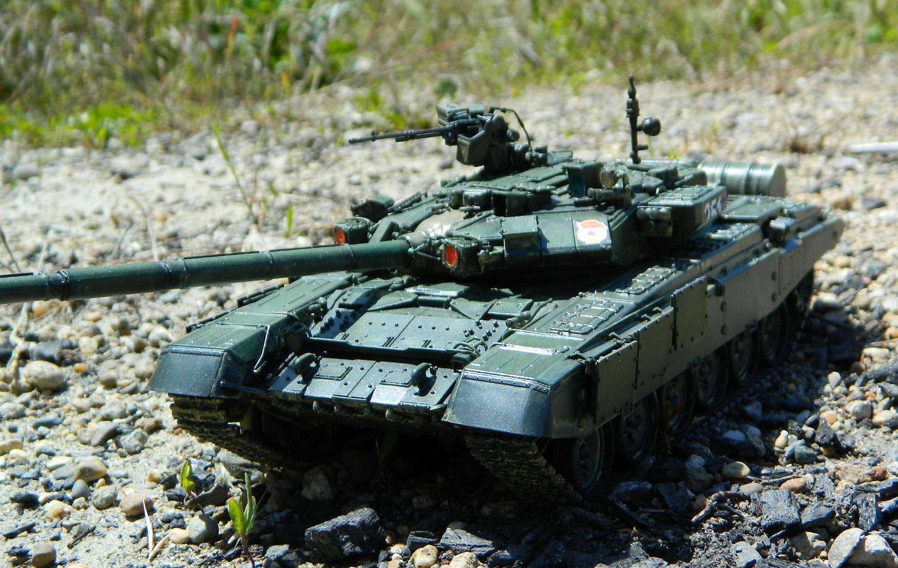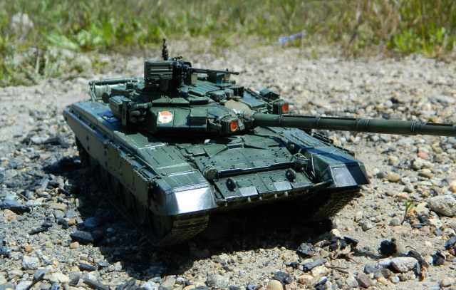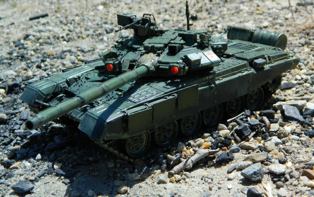 Модель ОБТ ВС РФ Т-90, 1/35, Звезда. Примерно посередине стройки (уже башня и коррпус закрыты, посетила меня светлая мысль сделать его натурально демонёнком.