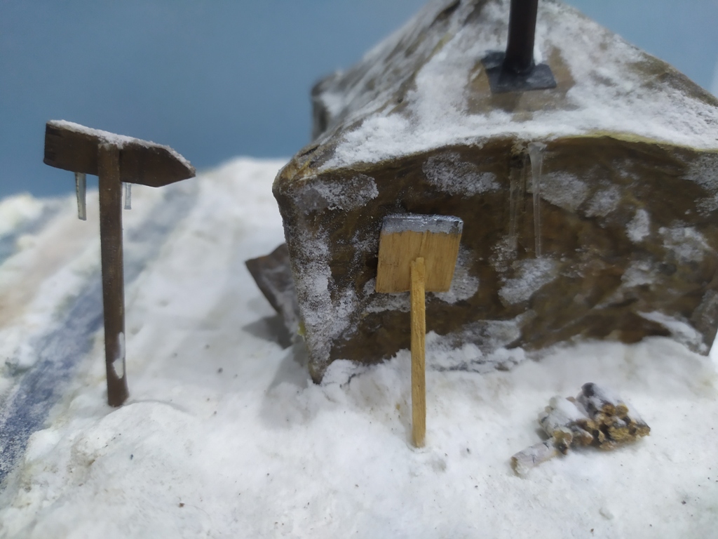 Ну в целом, даже очень! Если эта Ваша первая работа, то просто Браво, так держать!!! Ну если хотите по критике, то держите! Рассеиватели фар в разную сторону, черенок лопаты слишком толст, снег на тенте палатки хорошо лежит, только где труба можно "подтаить" темной смывкой, капот теплый, поэтому снега на нем недолжно быть, на тенте снег по логике должен скапливатся на задних боковинах стоек, и на переднем верхнем свесе, ну и подставку нужно подкрасить, а то как тортик смотрится, сверху оставить белый "снег" а низ "лед" в тотдже цвет что и колею, а самый нижней слой в темно сине-зеленый, чтобы было ощущение что на льду. C уважением! Успехов!