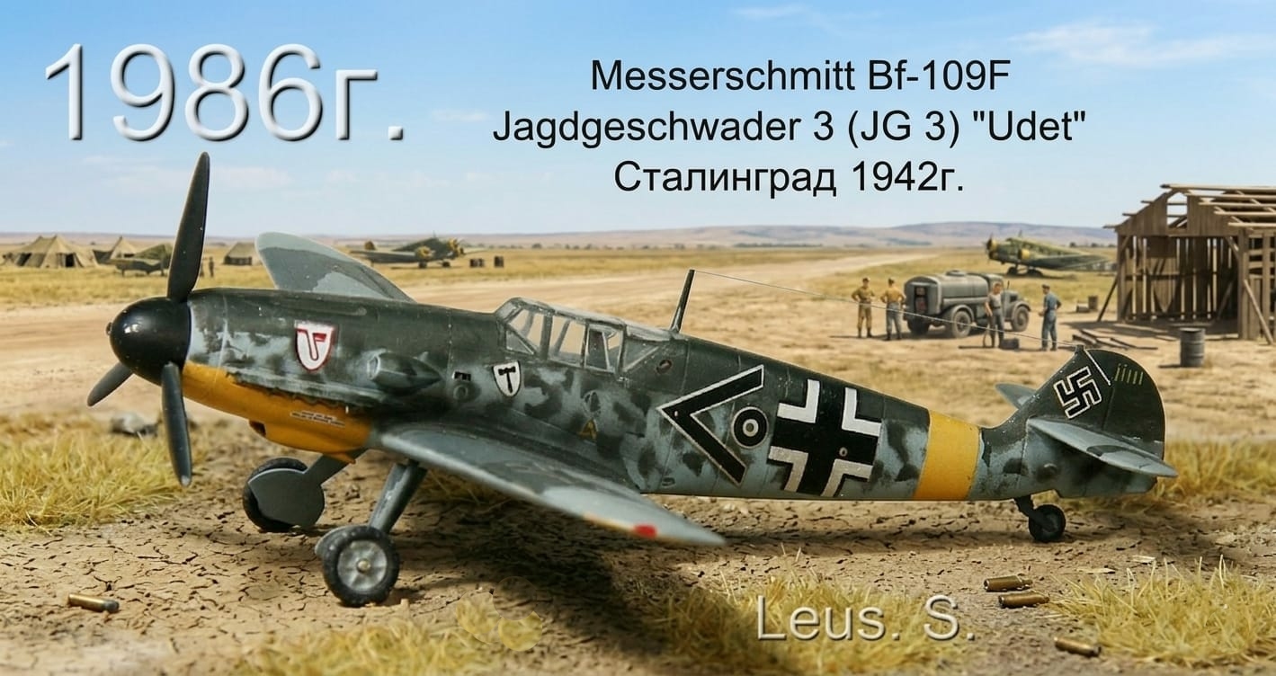 Вашему вниманию самая древняя сохранившаяся у меня модель Messerschmitt Bf-109F. Работа, примерно 1986года.