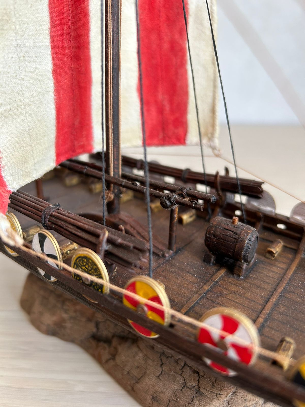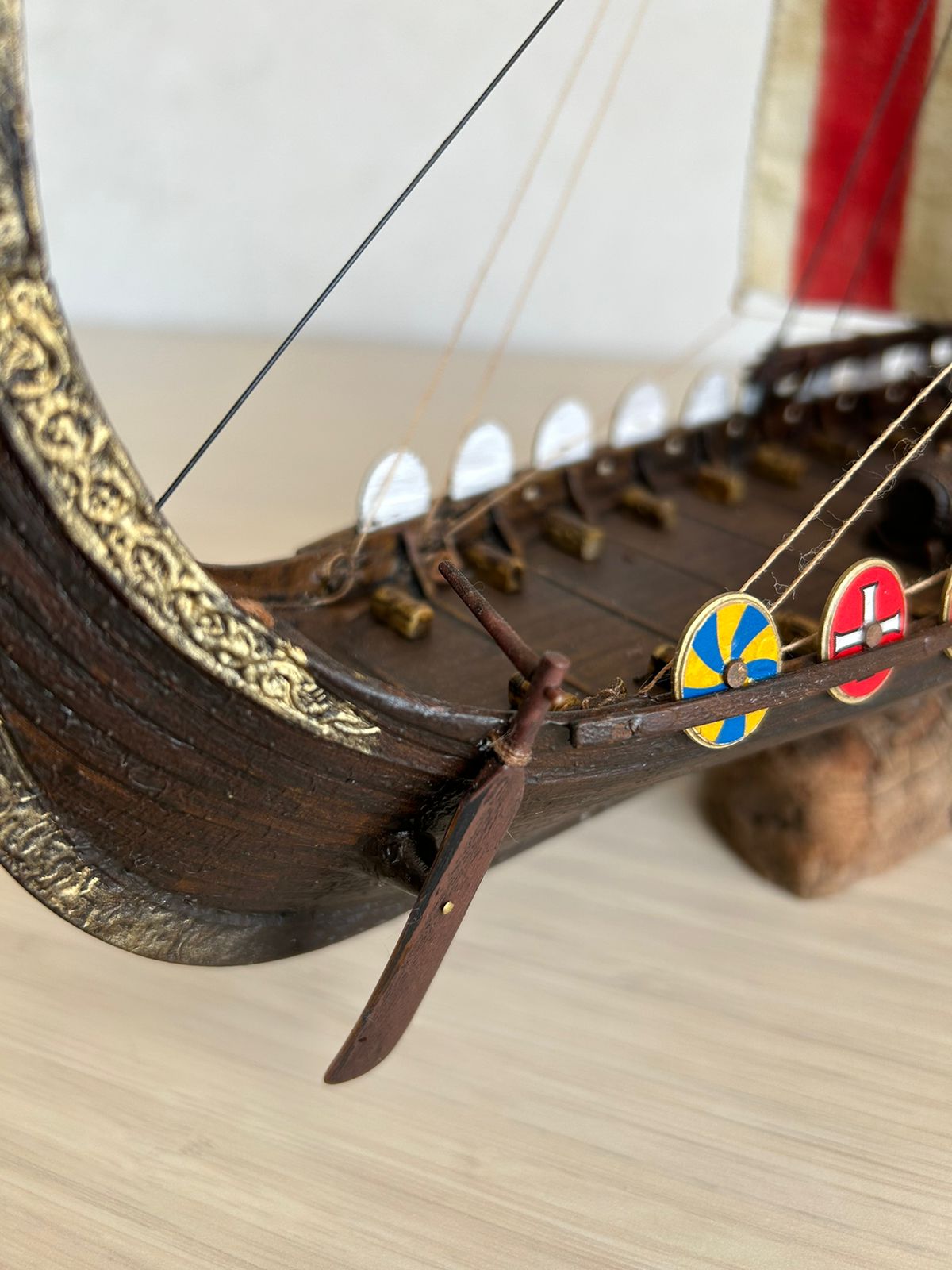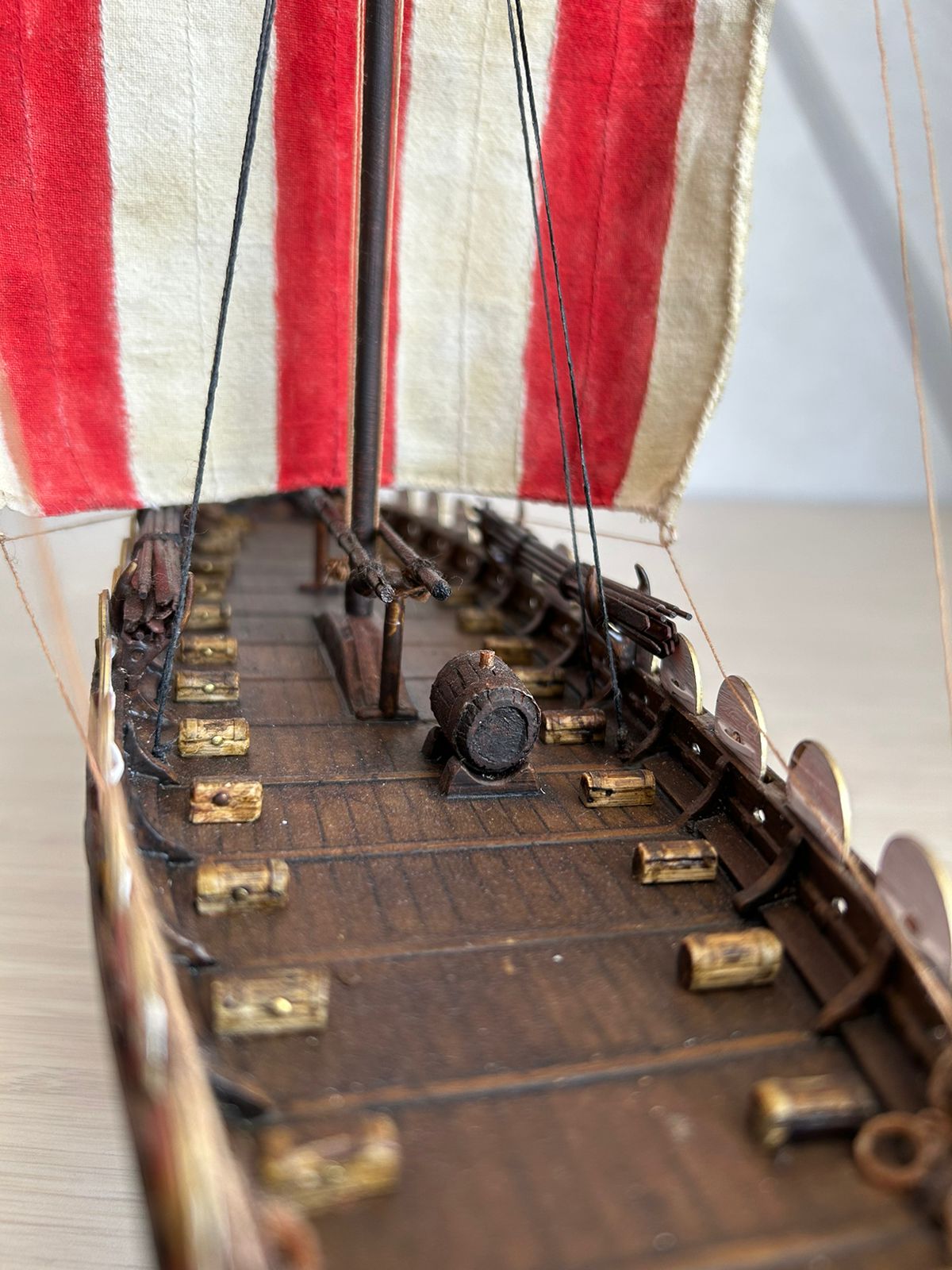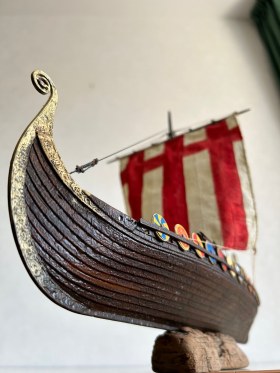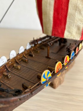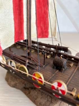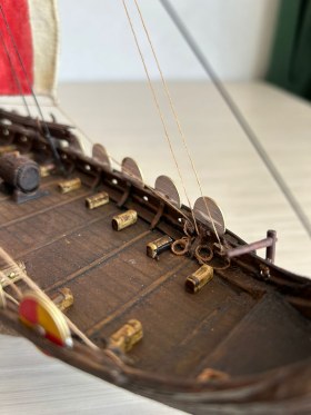 Я вообще про корабли викингов особого представления не имею. Но модель лично мне понравилась, по покраске натуральное дерево. Парус прошит грамотно, дырок от иглы нет.
