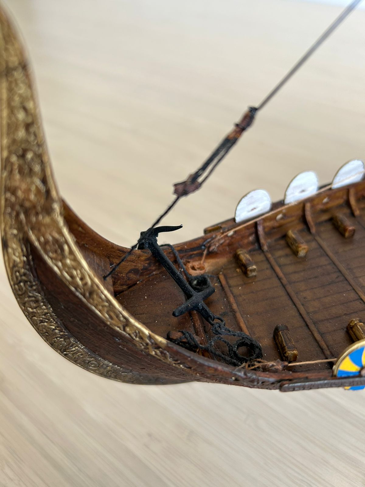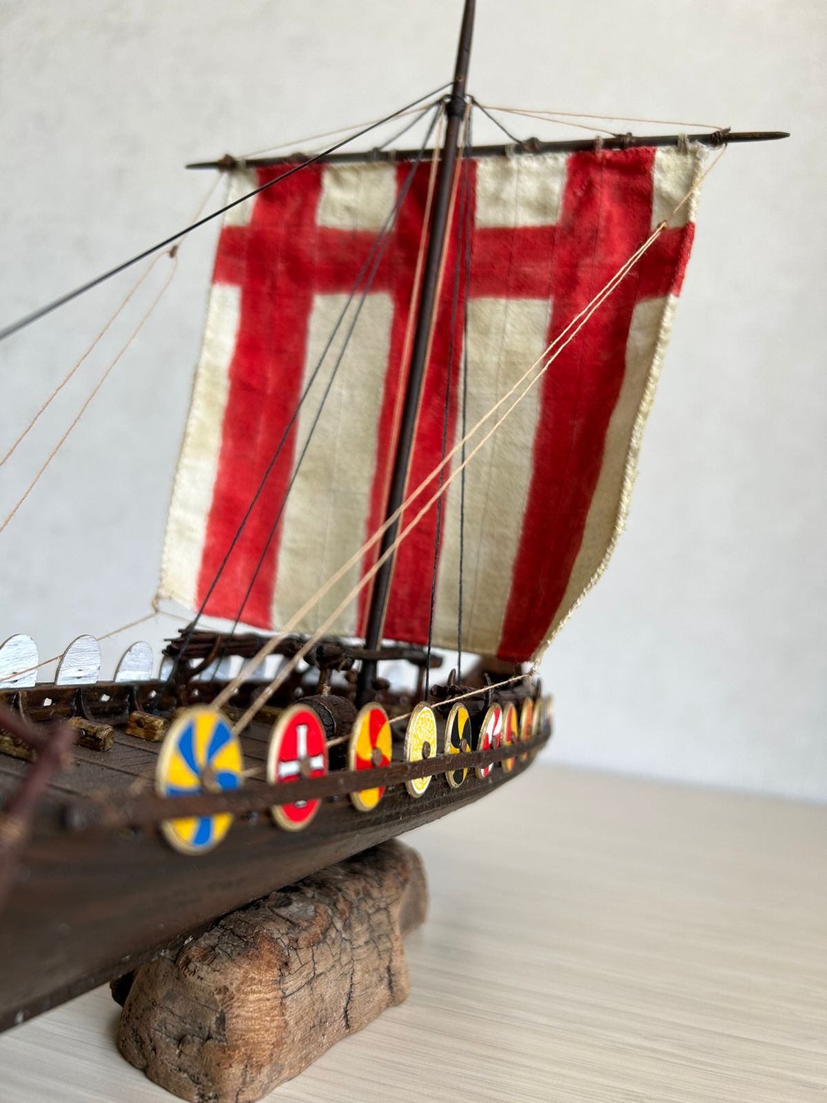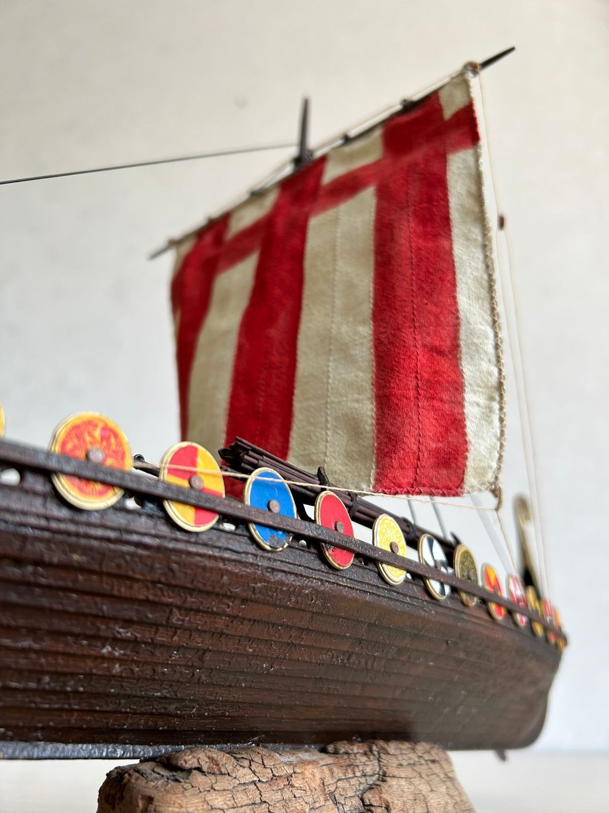 Я вообще про корабли викингов особого представления не имею. Но модель лично мне понравилась, по покраске натуральное дерево. Парус прошит грамотно, дырок от иглы нет.