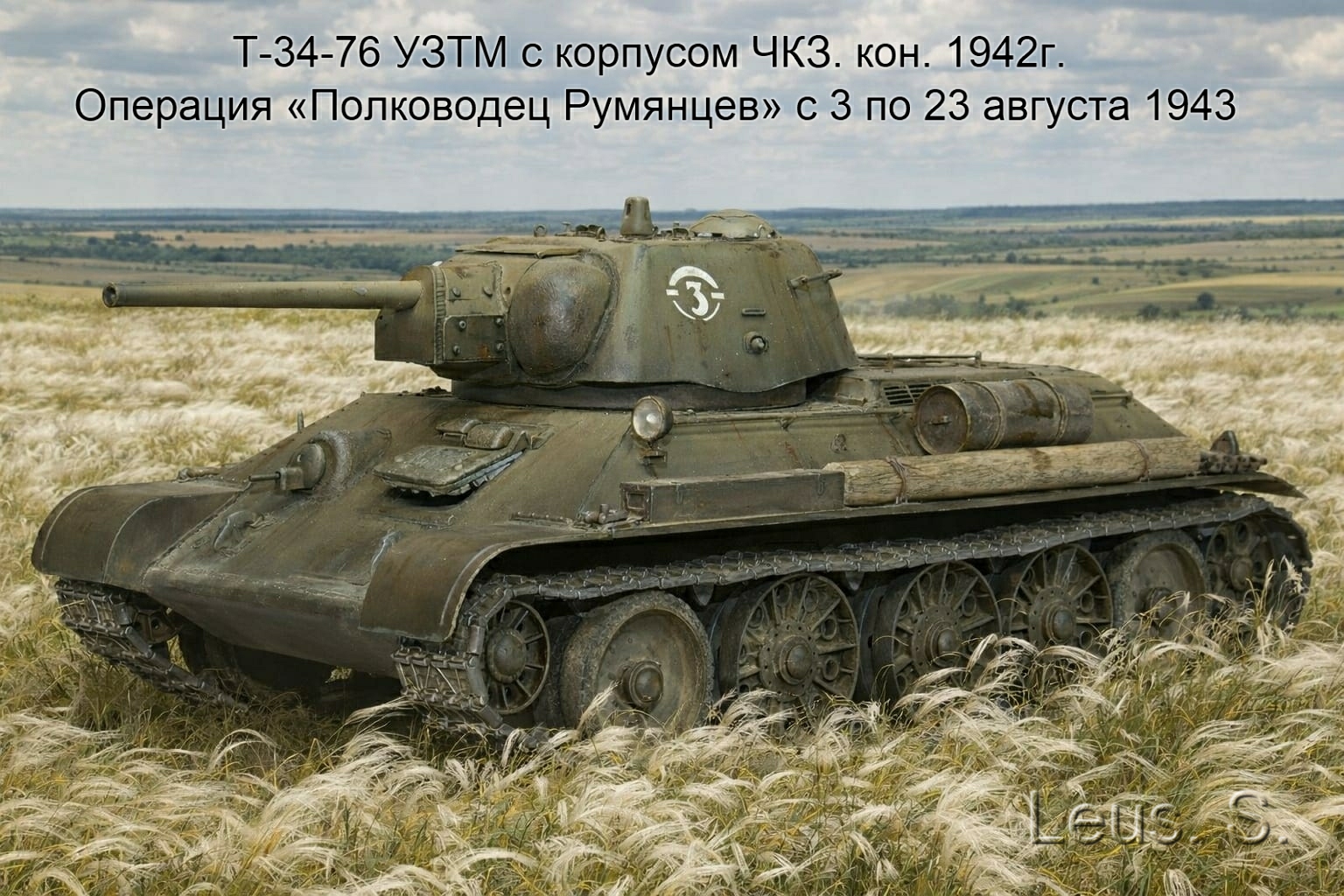 Т-34-76 УЗТМ с корпусом ЧКЗ.кон.1942г. Oпер.«Полководец Румянцев»с 3 - 23 августа 1943