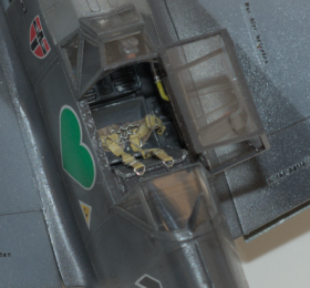 Ремни кстати отлично получились. Вопрос у меня только к излишнему V крыла (хотя и немного, может и ошибаюсь) и цвета камуфляжа (не встречал таких). Цвет кожи у техника желтушный. Рекомендую краску Тамия XF-15 для такого.