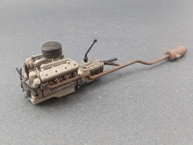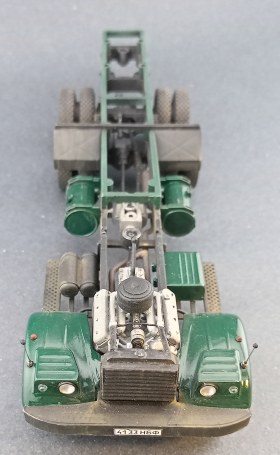 Если б я знал, что АВД перевыпустит КрАЗы, я б эту модель и не купил. Ну а поскольку уже взял, надо было с ней что-то сотворить. Готовая модель от АИСТ, разобрана, отмыта от краски. Решил ставить в нее двигатель (UMI) и делать рабочую заднюю тележку, а также передний поворотный мост (харьковский, как и все колеса). С задней телегой была основная морока, т.к. кронштейны крепления рессор к раме сделаны очень неудачно и не там, где им следует быть по ширине. Пришлось все выпиливать с уничтожением рессор. Вырезал из всего этого сами кронштейны и мосты. Дальше вся телега собрана заново на рессорах от ЯАЗ210, который был куплен на гайки)). Благо, что форма рессор там очень похожая. Аналогичная морока была и с передним мостом. Не понятно почему в исполнении АИСТа (у АВД лучше, хотя тоже не ахти) передние рессоры очень короткие и их передние кронштейны практически не видны из-под бампера, хотя в реальности они настолько выразительно торчат, что являются неотъемлемой частью узнаваемого образа КрАЗа. В общем передние рессоры тоже от ЯАЗа вместе с кронштейнами. Пришлось добавить пару листов снизу, иначе мост вставал больно глубоко (яазовские рессоры оказались менее выгнутыми).
