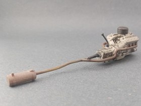 По мотору все более менее просто кроме выхлопа. Родной весь слишком тонкий, поэтому от него оставлена только задняя банка. Сам выхлоп согнут из медной проволоки. Ветви соединены пайкой.
