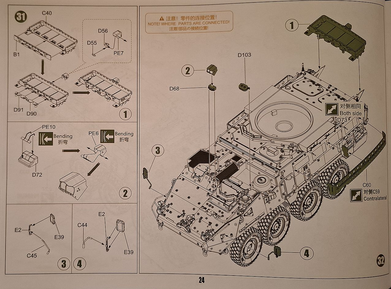 Отличная подробная черно-белая глянцевая в виде книжки инструкция на 42 позиции по сборке, выделенный каждый новый этап сборки, с цветной схемой окраски в конце на один вариант (и анонсом следующую модификацию)