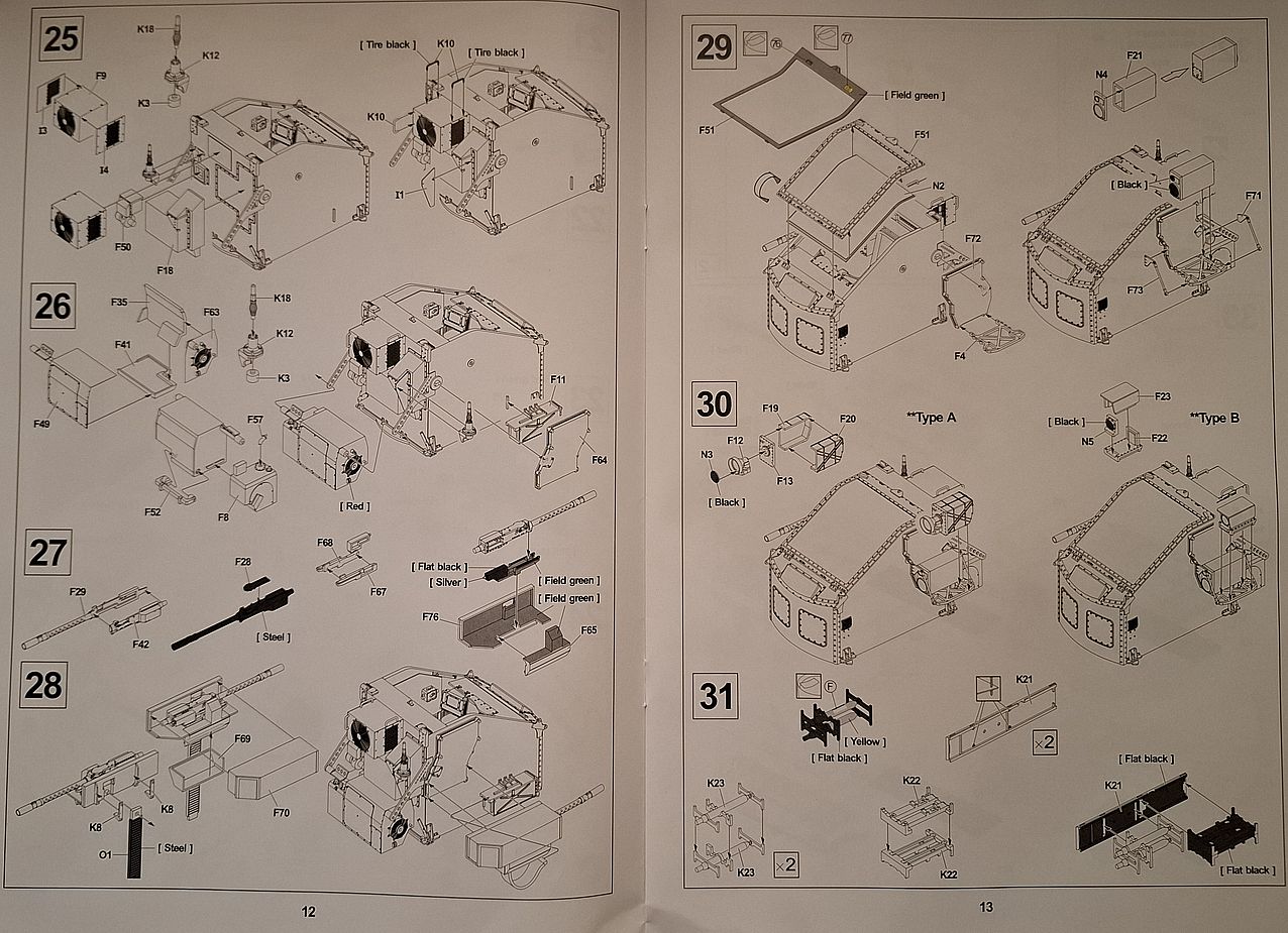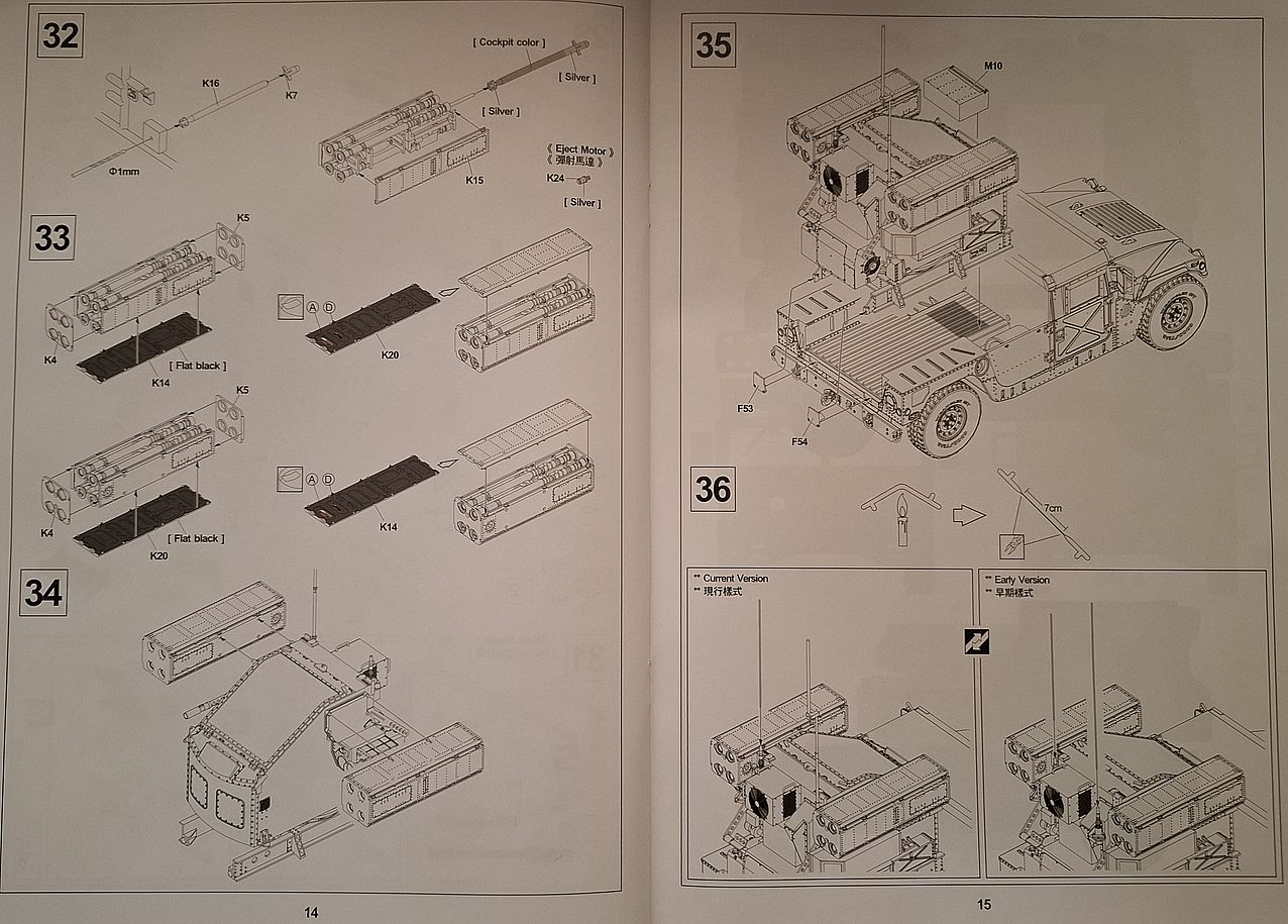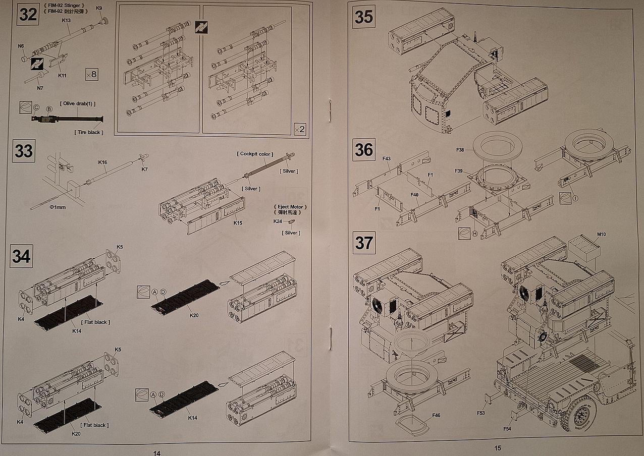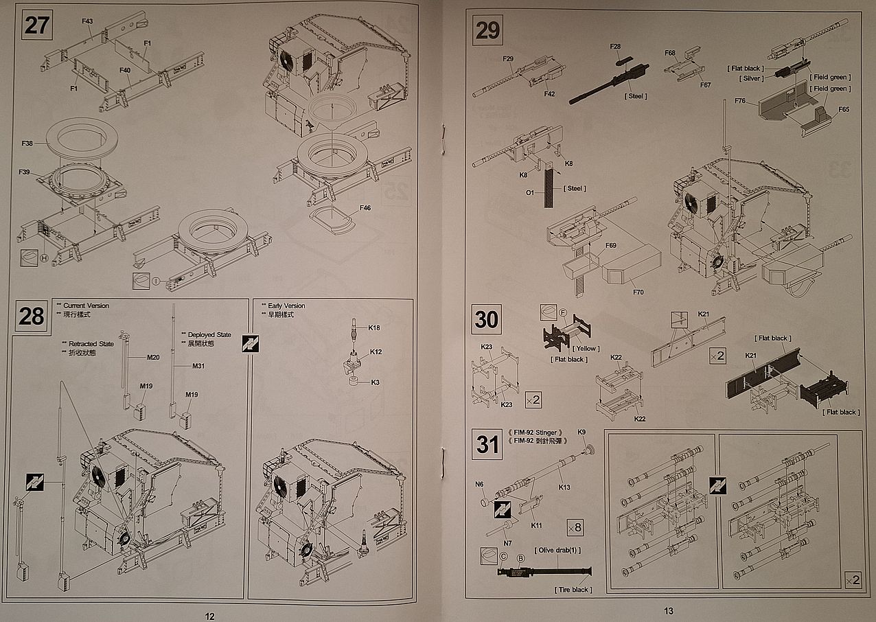 Вторая инструкция на 38 позиций имеет описание на английском языке и позволяет собрать модифицированную модель ЗРК с более современной защитой и оборудованием и шестью вариантами окраски