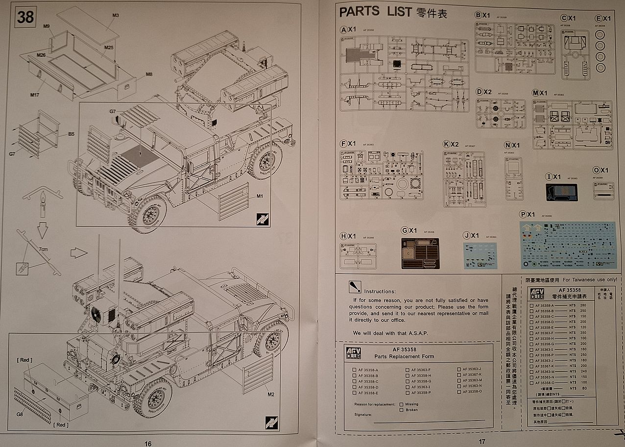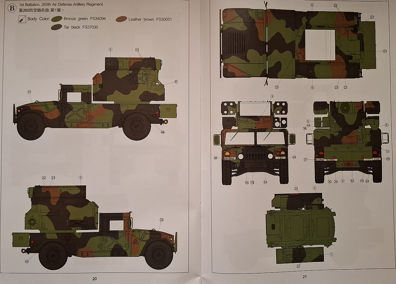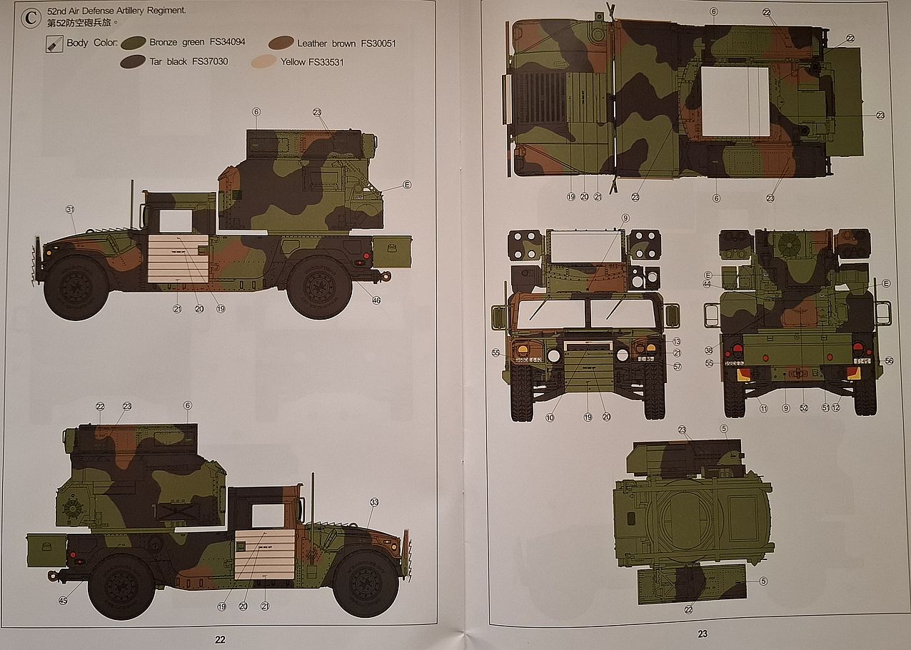 Инструкция в виде книжки 2шт одна на тайваньском на 36 позиций по сборке позволяет собрать стандартную модель данного ЗРК, и четыре варианта окраски