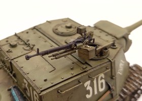 Из дополнений использовал металлический ствол, наборные гусеницы, сигнал от spm, тросики и мелкий сор от Миниарта. Также украшением машины стал печатный пулемет от отечественной фирмы ЛивРезин. Красил акрилом от АммоМИГ, пачкал их же продукцией.