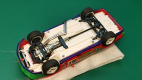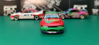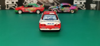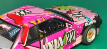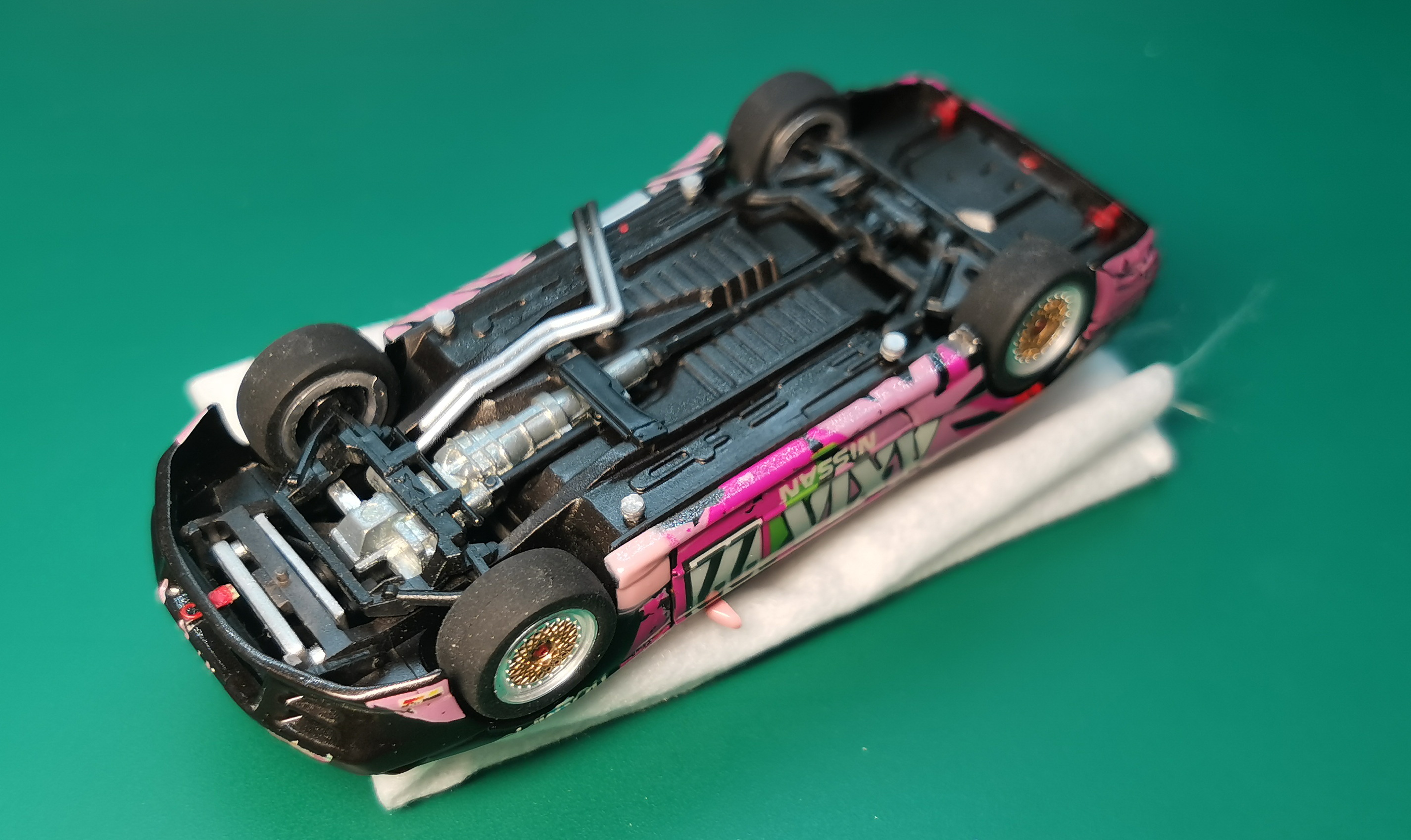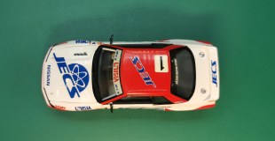 HKS 92 - окрас смешанным основной ярко красный цвет Mr.Hobby, зеленый и фиолетовый Tamiya (было два варианта окраса и был выбран вариант с полосой на лобовом). Здесь было попроще с масками и с декалями, но некоторые сложные изгибы кузова декаль не хотела повторять из за дубовости, размягчение и приварка разрушала и без того хрупкую декаль. Процесс лакирования и нанесение декаль аналогичен Аксии за исключением нанесения еще доп слоя GX100 чтоб не сильно залить модель но скрыть ступеньки декальной подложки. Салон и днище белые.