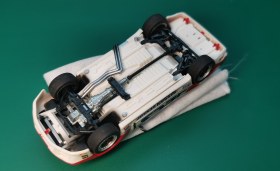 Unisa Jecs 92 - белая краска от Mr.Hobby и красные элементы от ярко красного от HKS (скорее всего цвет еще ярче должен был быть), еще прощем чем HKS в плане нанесения масок. Нанесение лакам (в два три слоя для скрытия подложки декалей) и декалей самые простые. Декаль самая крепкая и выдержала приварку. Салон белый с черной полкой и белым днищем.