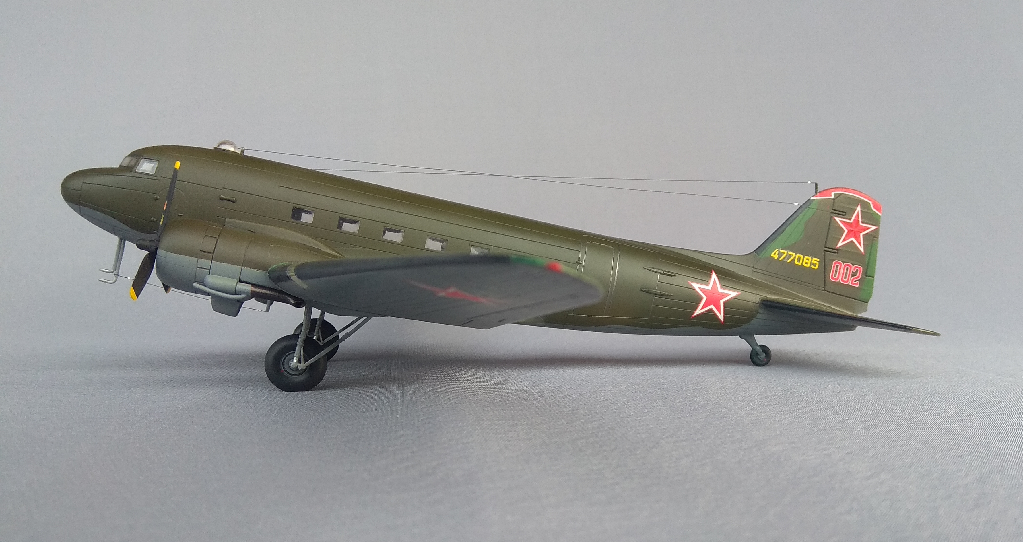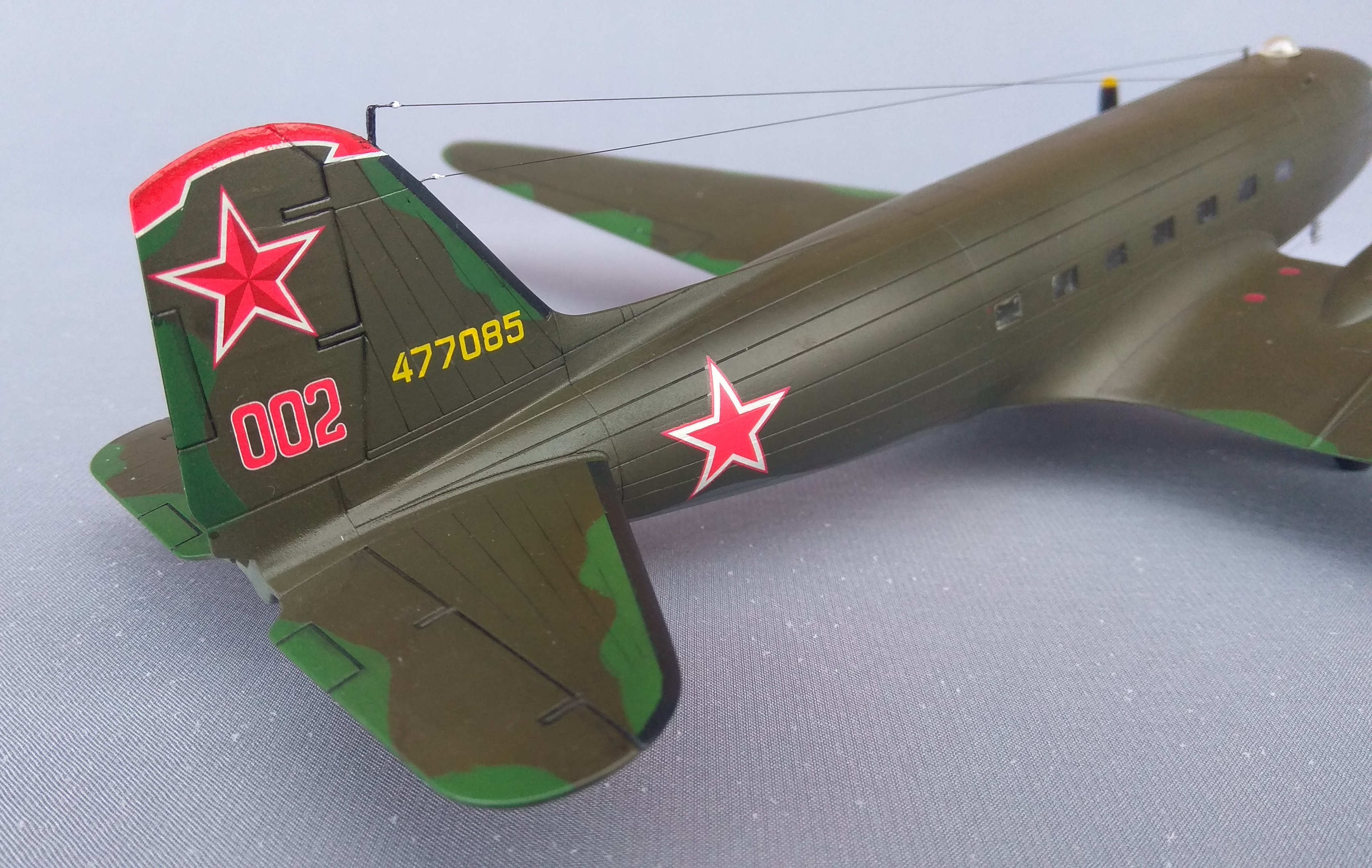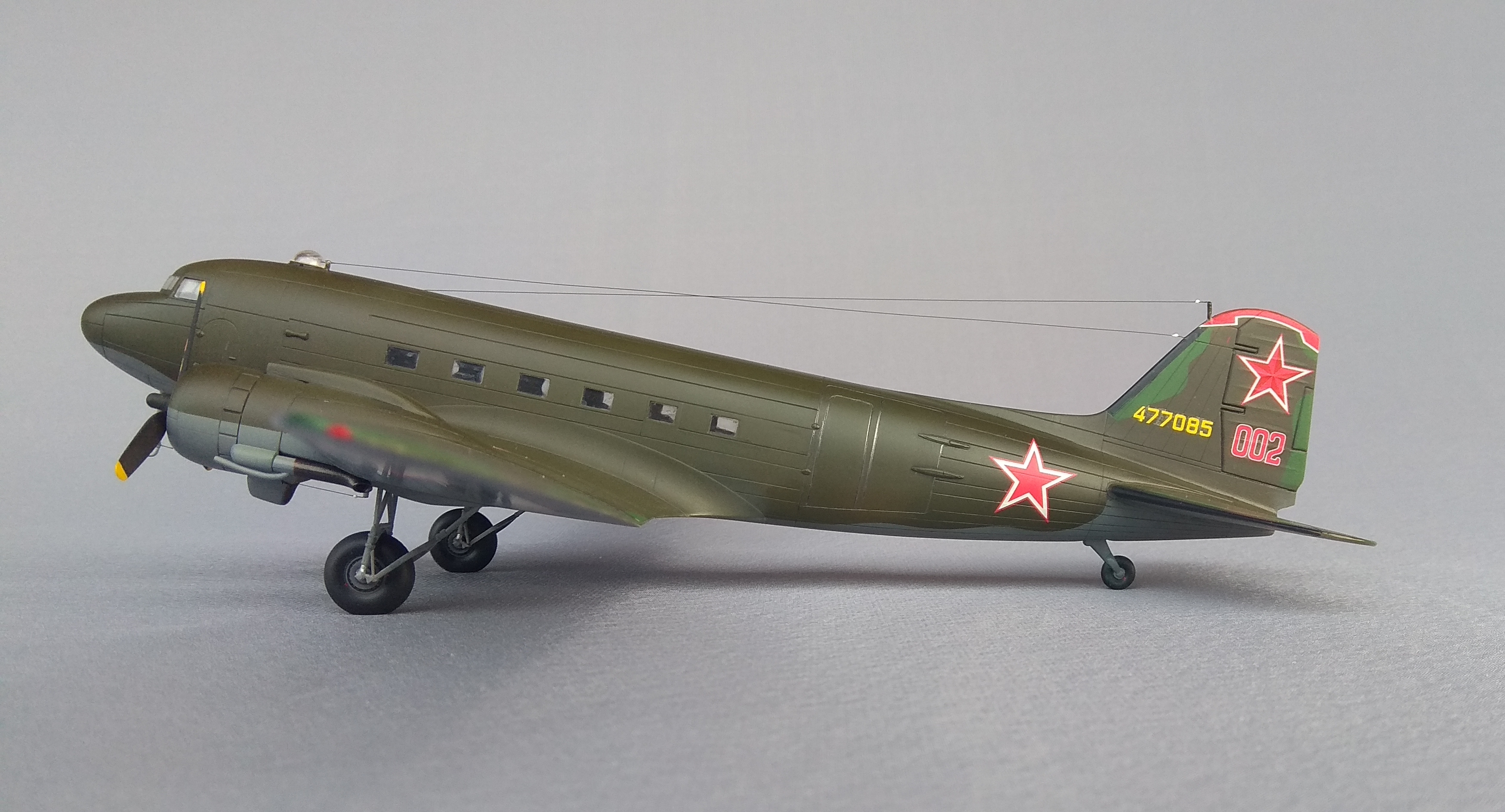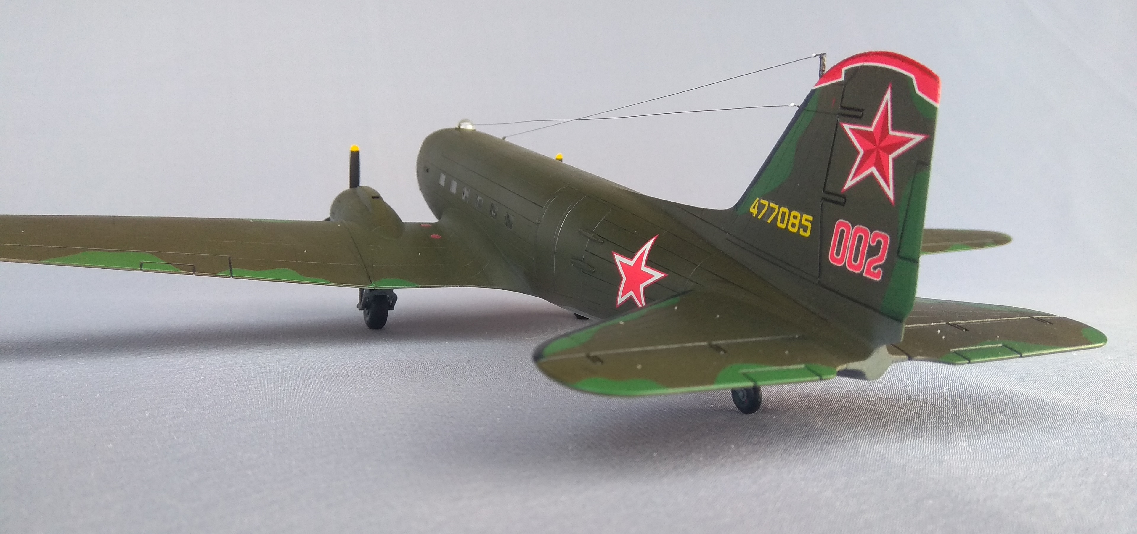 СССР по Ленд-лизу получил 707 самолётов С-47. Фотографий этого самолёта, во время его службы в СССР очень мало. Приобретя в своё время декали для Ли-2/С-47 от Authentic Decals, выбрал пример самолёта C-47B-35DK, изображенный на рисунке 19, с серийным бортовым номером 477085.