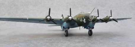 Передние части двигателей, воздухозаборники, воздушные винты с коками были взяты из двух наборов Ту-2 1:72 от ICM. Сравнение воздушных винтов Ту-2 с винтами Пе-8 от Amodel показало, что лопасти надо сделать поуже и удлинить. Что и было сделано. С коками надо было поступить по-другому: перпендикулярно оси кока сточить храповик. А я, стачивая храповики, немного закруглил коки…