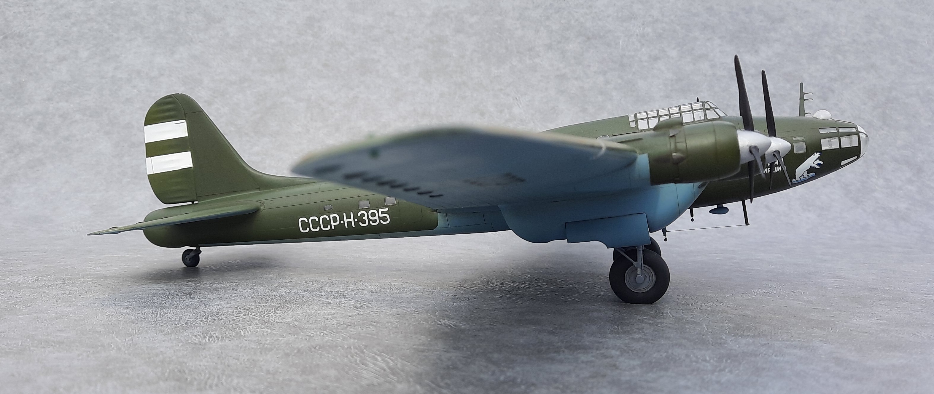 И по мере накопления опыта сборки моделей, используя набор от фирмы "Звезда", захотелось почувствовать себя настоящим реставратором и воссоздать в масштабе 1:72 полярный Пе-8 М-82 Н395.