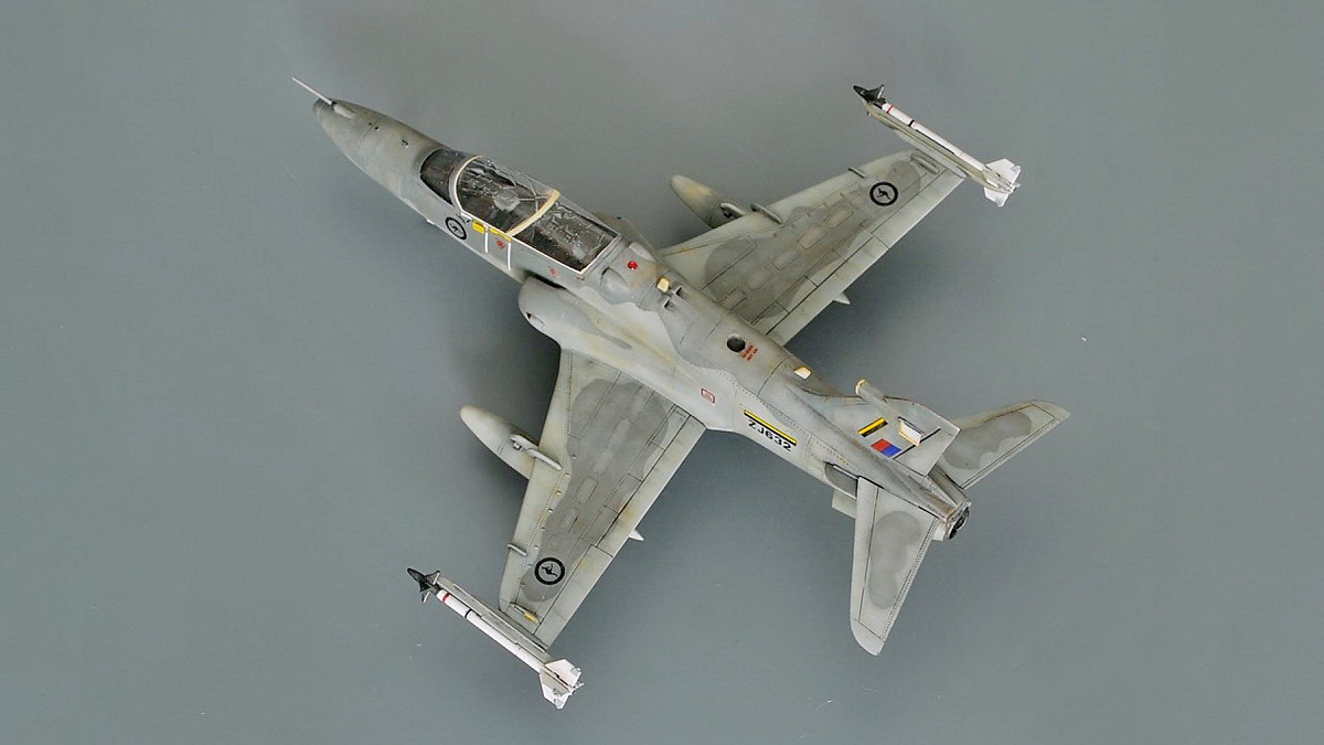 Итак, модель самолета BAe Hawk 127 RAAF. Исходник: старенькая простенькая "сотка" от "Italeri". Минимум деталей, упрощенная декаль, не соответствующая прототипу и т.д. и т.п. Решил делать австралийский вариант, поэтому , по-минимуму, кое-что перепиливал, убирал и добавлял. В целом, сборка более-менее прошла нормально. Покраска стадндартная ( в моём понимании): грунт, акрил, масло, лаки. Декали, как я уже отмечал, не соответствуют реальному борту, но и цели сделать модель по конкретному прототипу не было. В итоге: модель сделана, результат перед вами.