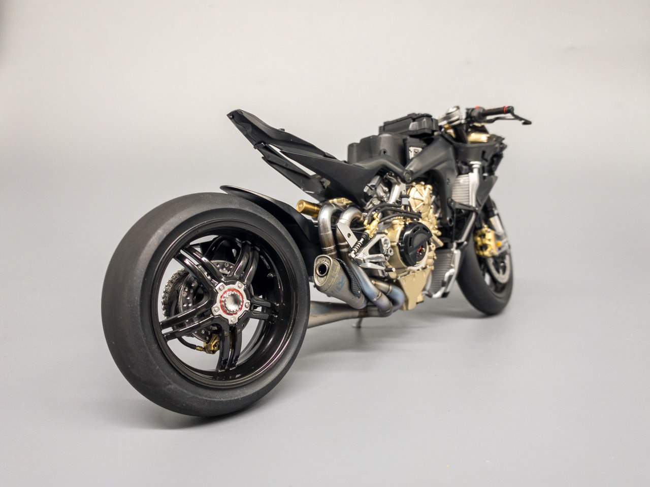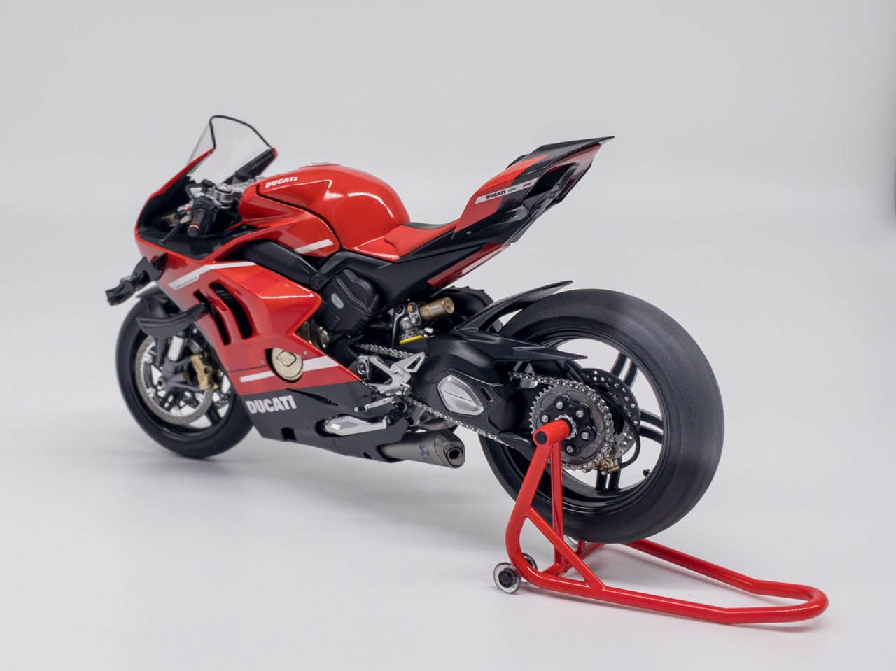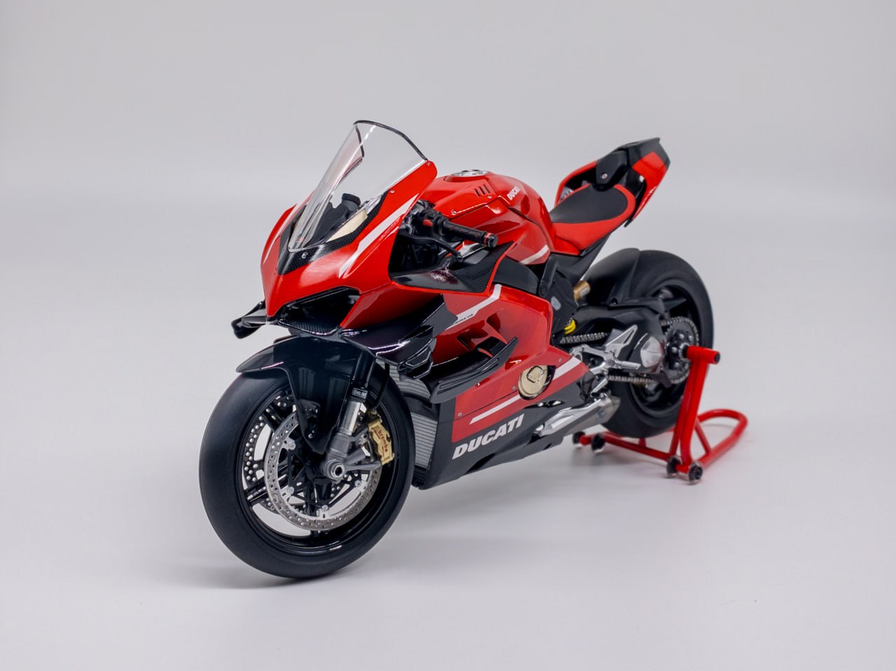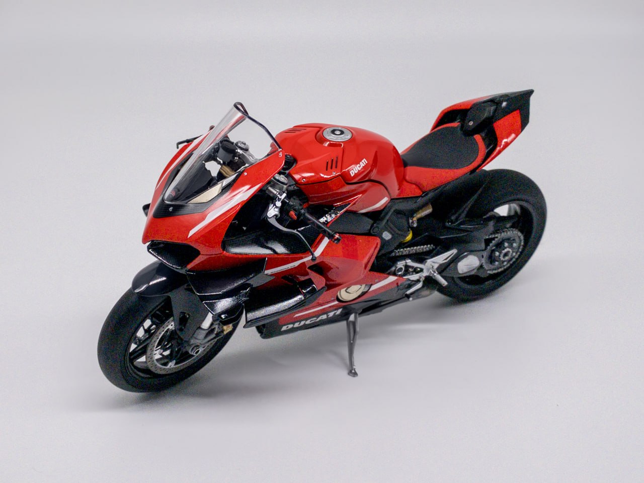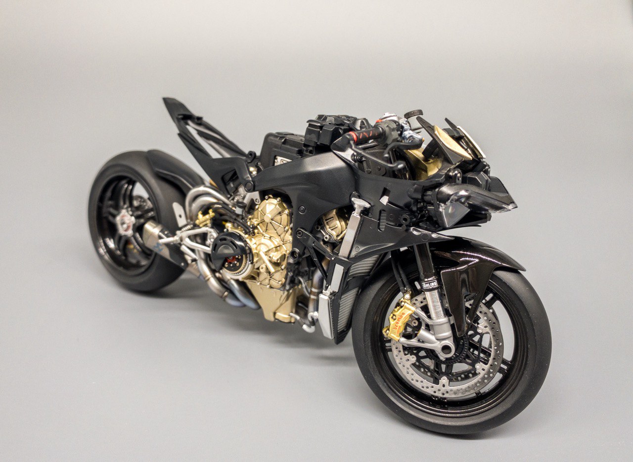 Из описания в интернете: Superleggera V4 — это вершина инженерной мысли Ducati, созданная для максимальной производительности, часто описываемая как "ближайший к MotoGP гражданский мотоцикл" - и первый мотоцикл, модель которого я решил попробовать собрать.