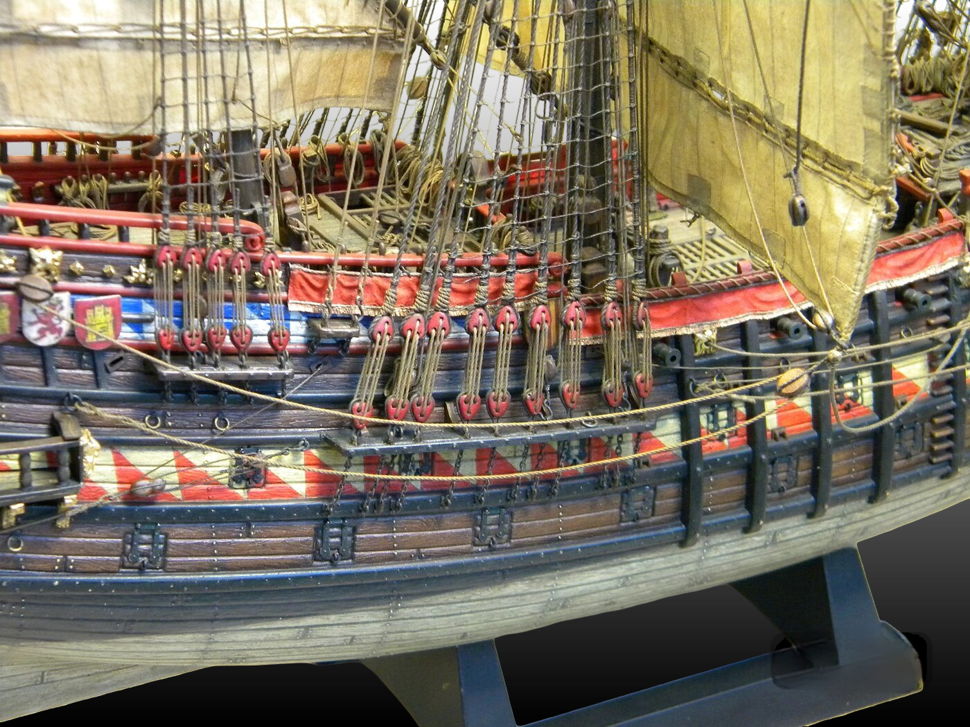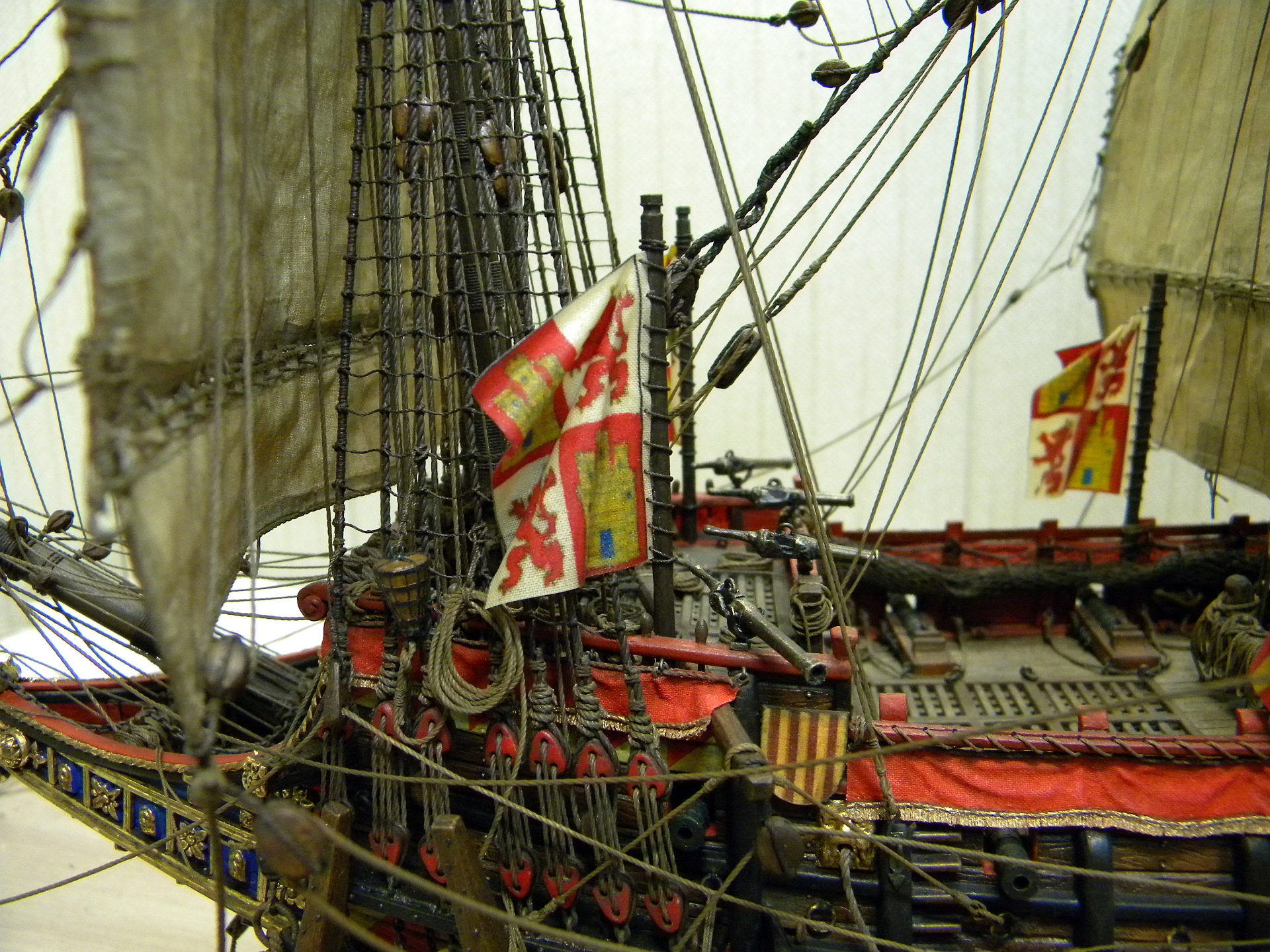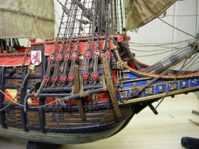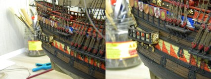 А в целом - сейчас по второму разу пересмотрел, полностью открывая фото в отдельных вкладках - работа изумительная. Просто сердце замирает. Драпировки на марсах и по бортам - в наборе были предусмотрены, или Ваша идея? Интересно! Ни разу не видел такого.