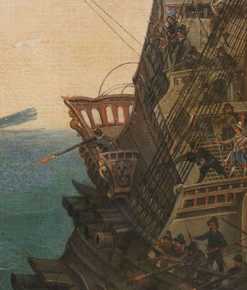 " драпировки" - это стандартная практика для 16 го - 17,18 го век ов, вооружались перед боем для доп.защиты команды от стрелкового оружия, они( waistcloth) присутствуют на многих картинах с галеонами и на батальных картинах этого периода,фактически это декоративная часть конструкции закрывающая подложку "serving" в виде матов из старой парусины, тросов в несколько слоев , все это служило дополнительной защитой экипажа на открытых участках палубы и боевых марсов от мушкетных пуль, осколков и пр.прелестей во время боя... здесь эта тема поднималась как то