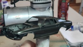 -Изначально,так как это модель Мустанга Boss 302, а я хотел сделать гражданский хардтоп, то пришлось выпиливать отверстия на задних крыльях,чтобы сымитировать воздухозаборники (на босс 302 их не было)