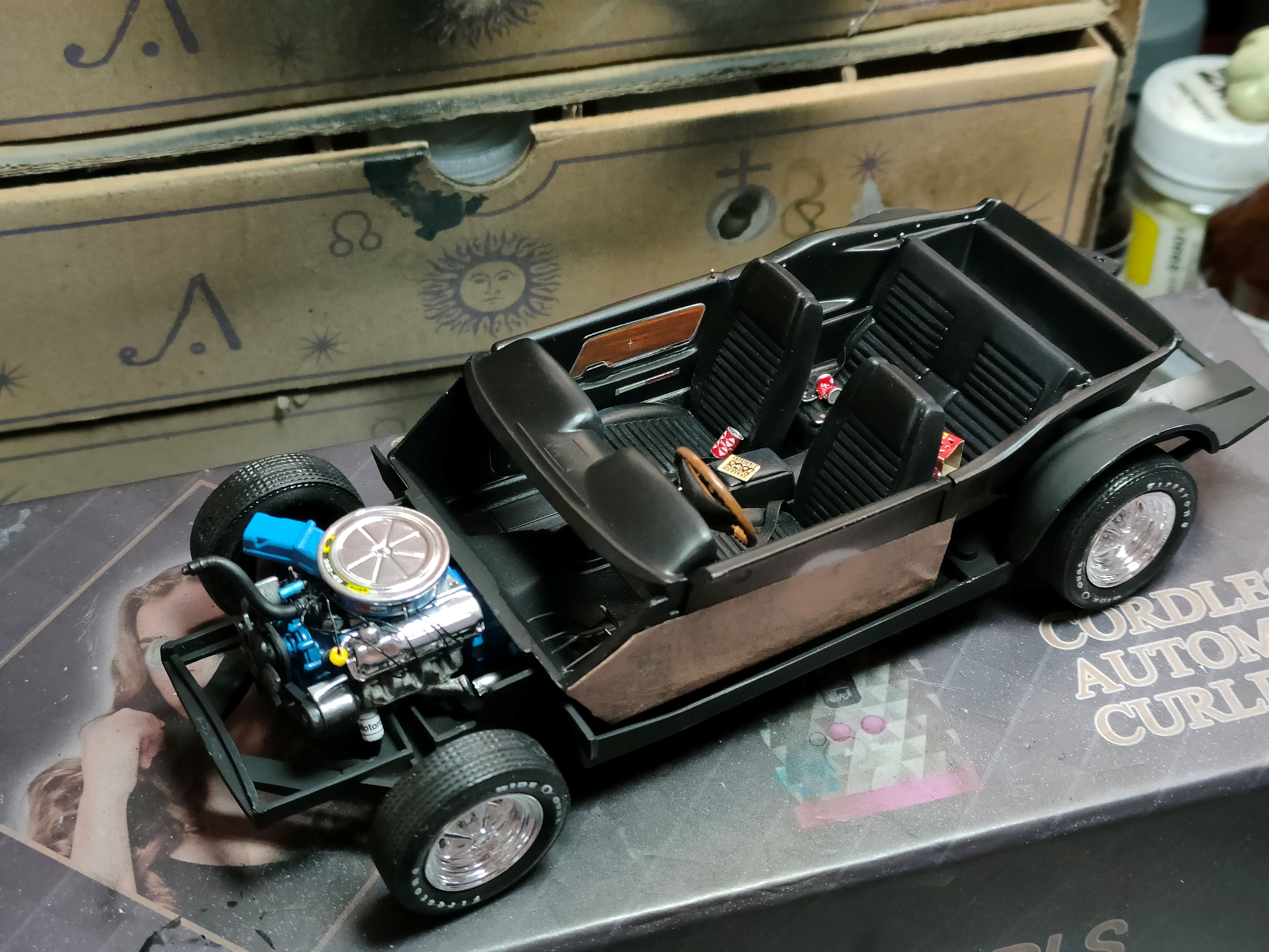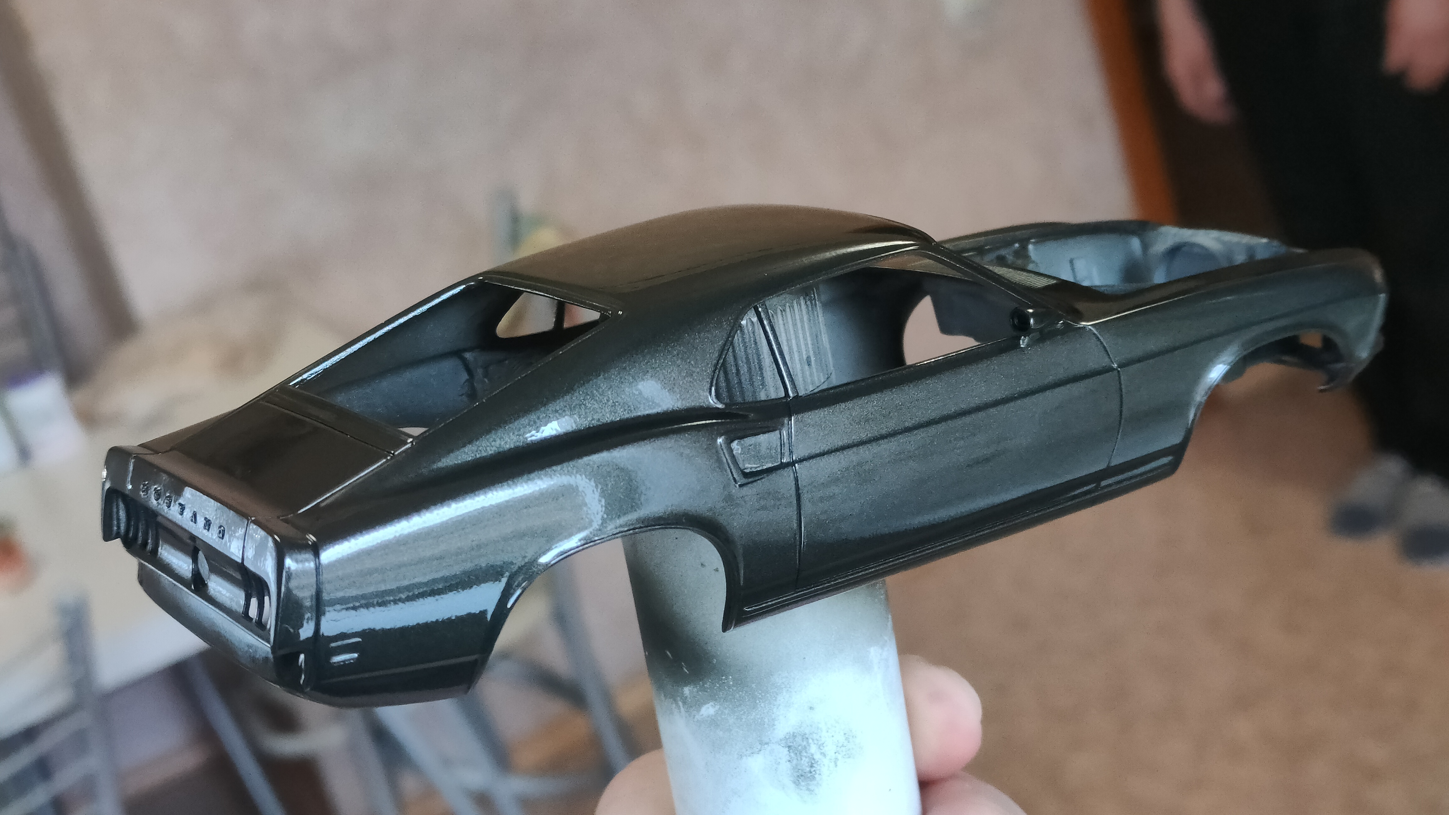 Давно хотел собрать Мустанг 69 года, поэтому было принято решение купить набор от Revell. Кит максимально дубовый (пресс формы чуть ли не 80х годов), поэтому пилить пришлось очень много.