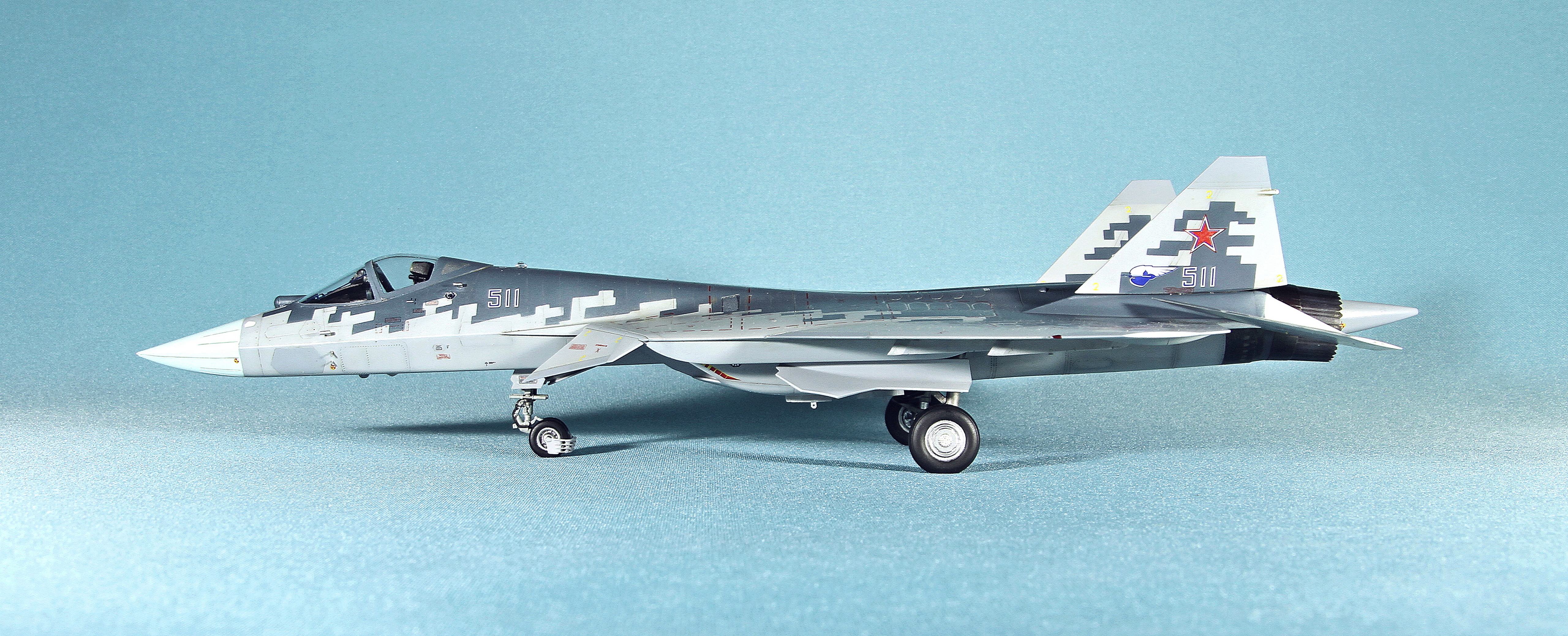 Этот год отметился снижением производительности моей модельной фабрики, но все же кое-что удается скрафтить. И вот сегодня это будет Су-57. Ну или, как утверждает производитель, Т-50-11, принятый за эталон серийного Су-57. Я не буду лить воду про историю создания прототипа, а перейду сразу к модели.