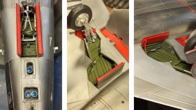 McDonnell RF-101C Voodoo в масштабе 1/48 от Kitty Hawk это относительно свежая модель. Наши китайские коллеги весьма неплохо подошли к изготовлению данного кита, но китайцы не были бы китайцами, если бы не накосячили сразу в нескольких, весьма заметных местах. Причем, если почти все, что они сделали не так, можно исправить, то как моделист должен поступить к приплюснутым фонарем, каждый должен решать сам. Я попытался скрыть эту проблему, просто закрыв фонарь. Так почти не заметно. А вот вакушить новый фонарь, это гемор отдельный и он был просто не нужен в моем случае. Остальные косяки сравнительно несложно устранить самому. Если следовать цифрам на моем коллаже, то 1 - это исправление установки закрылков, 2 - изготовление створок штанги дозаправки путем вживления смоляной детали от Quickboost. Причем эту деталь тоже надо переделать, потому что она для F-101A и имеет совсем другую форму. КН эту деталь вообще упустили и модель имеет абсолютно гладкий нос! 3 - это исправление формы воздухозаборников, так как на модели они для модификации F-101B и сильно скошены назад. Пришлось нарастить. Кстати, тут я конкретно протупил. Сначала дендрофекальным способом нарастил стенки до нужных размером, зачисти, нарезал, проклепал, а потом, случайно обнаружил на литниках нужные детали. Сначала матерился, потом поржал и продолжил. Получилось точно не хуже! Скорректировать пришлось и форму разделительного щитка. 4 - это коррекция формы вентиляционного отверстия для отвода горячего воздуха на правой стороне фюзеляжа. Тут просто вырезал отверстие и наполнил его решеточкой из тонких полосок дошипласта. Из мелочей добавил створки приемника системы дозаправки в воздухе, сошлифовал ненужные в этой модификации габаритные огни из носовой части, фюзеляжа и хвостового оперения. Думаю, что надо перечислить какие дополнения были еще использованы "для форсу бандитского". Ниши шасси и колеса от Aires, двусторонние маски от Эдуарда, набор цветного интерьерного травления от Эдуарда.