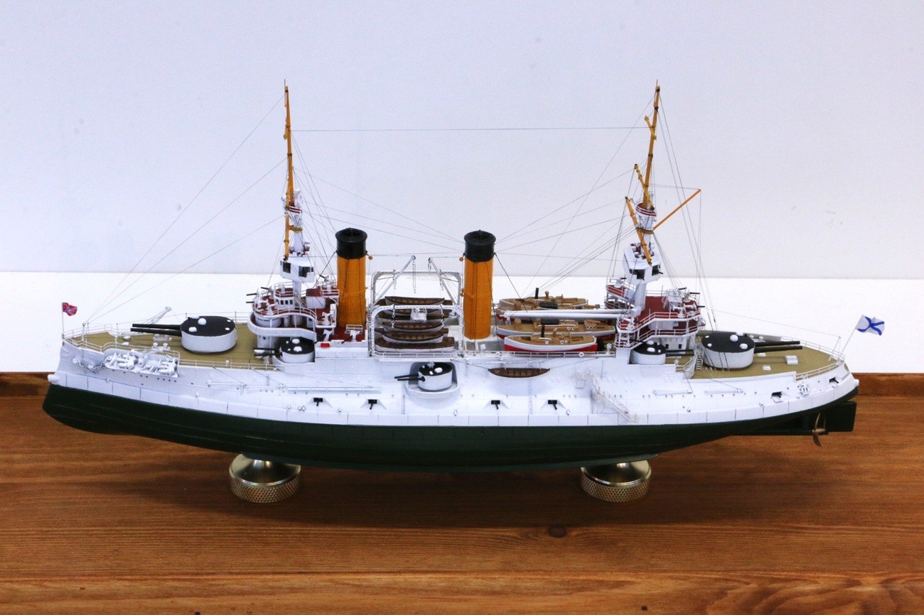 Построил модели кораблей советского периода, что мог достать. Есть правда еще в наличий Кузнецов, но наверное еще не созрел и ждет своего времени. Посему решил заняться императорским флотом. Вроде бы те же корабли и масштаб тот же, но ощущения совсем другие. Первым приобрел модель броненосца от Трумпетера.