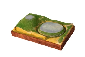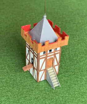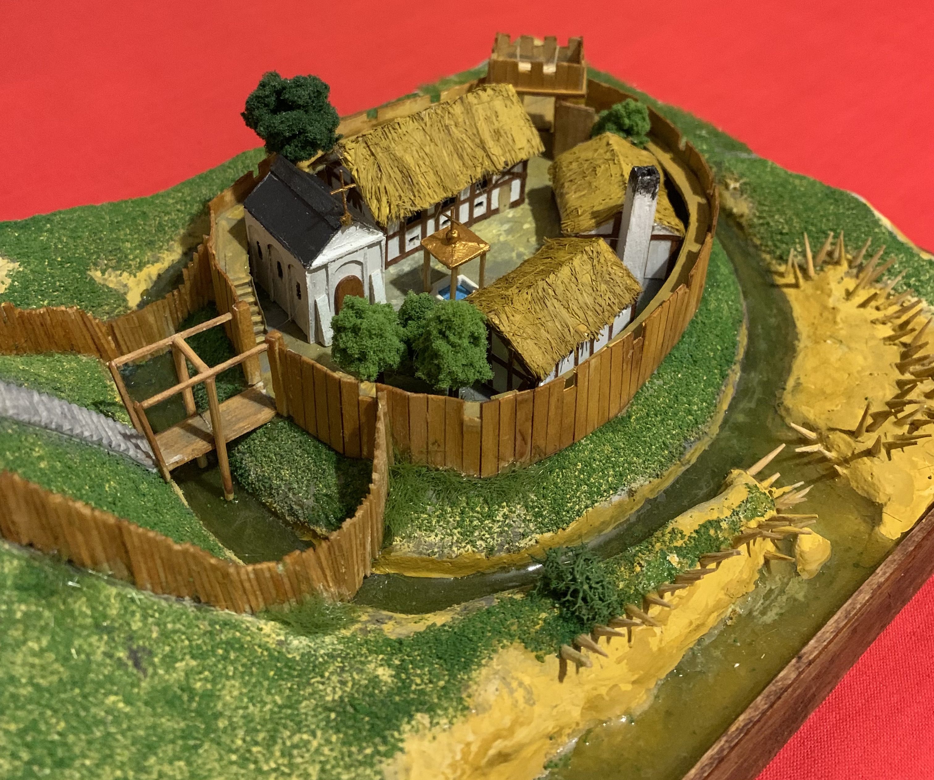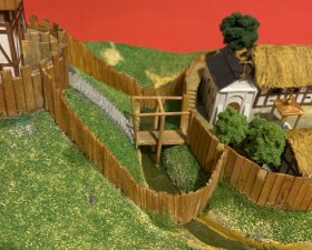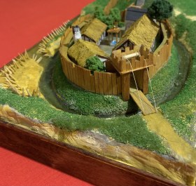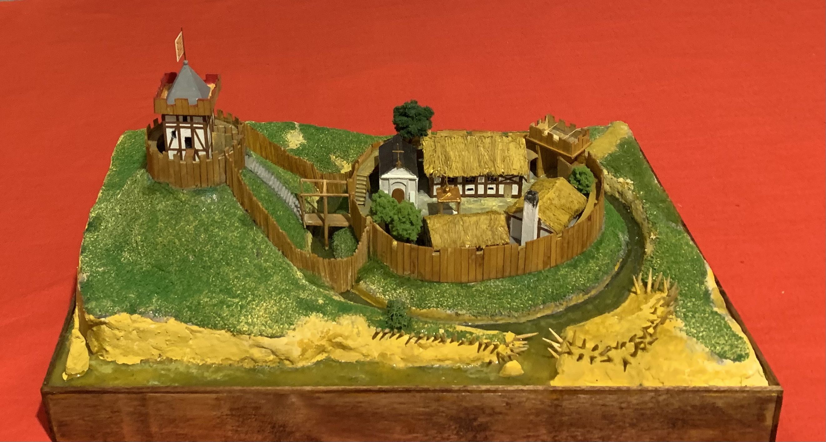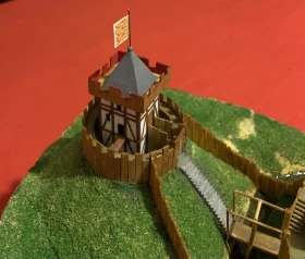 Из учебника истории средних веков для 6 класса мы узнаем, что рыцарский замок представлял собой «твердыню из камня». И –да, это действительно так и было. Вот только такими они были далеко не всегда. А в IX-X вв. замки рыцарей строились из… бревен и досок! И назвался тип такого замка «мотт и бейли». Мотт – это насыпной холм, на котором стоял донжон – жилая башня сеньора и его семьи, окруженная забором. Под холмом находился двор – бейли, также обнесенный забором и рвом, земля из которого шла на насыпку холма – мотта. В нем располагались помещения для челяди, конюшни, склады продовольствия, кузница и католический храм. Колодцы рыли и в подвале донжона и во дворе бейли, откуда в мотт вела крутая лестница, также имевшая отдельный подвесной мост. И такой же мост был переброшен из бейли на дорогу, что вела по направлению к этому замку. И только со временем деревянные ограждения и постройки мотта и бейли сменили каменные, и также каменным стал и донжон, а ров теперь окружал уже всю территорию замка! Но все эти перемены совершались не сразу, а постепенно. Те же каменные башни сначала были квадратными – так было проще их строить. Но затем выяснилось, что их углы уязвимы к ударам таранов и башни сделались круглыми. Данный макет сделал из палочек для шашлычков, зубочисток и реек от СВ-модель. Зелень - Али-Экспресс. Материал для подиума-папье-маше из упаковок из-под яиц. Краски акриловые. Обрамление подиума - школьные линейки цифрами внутрь. Макет передан в кабинет истории школы №6 г. Пензы