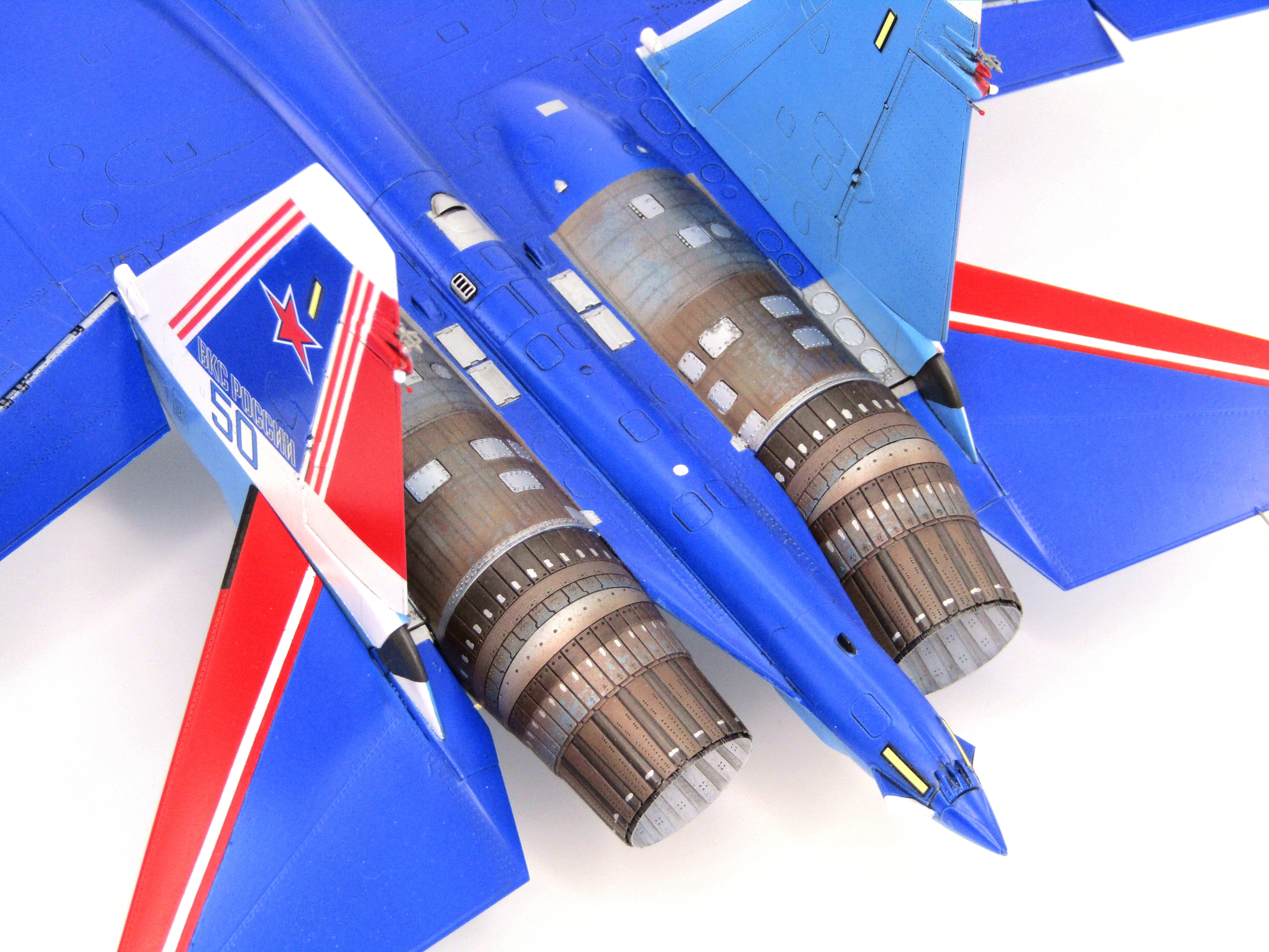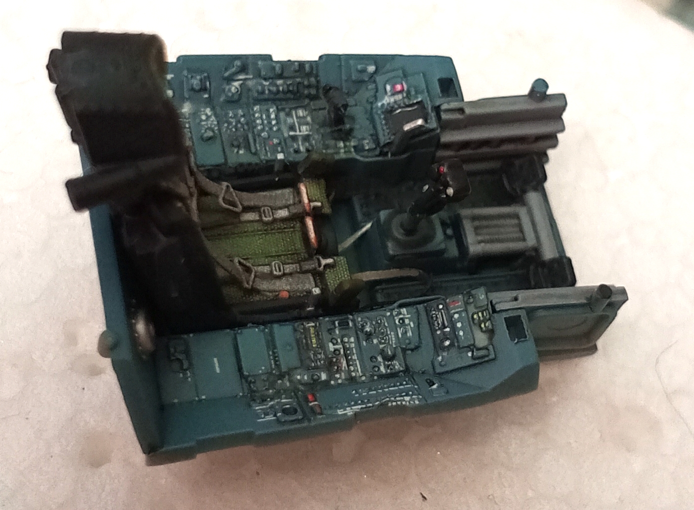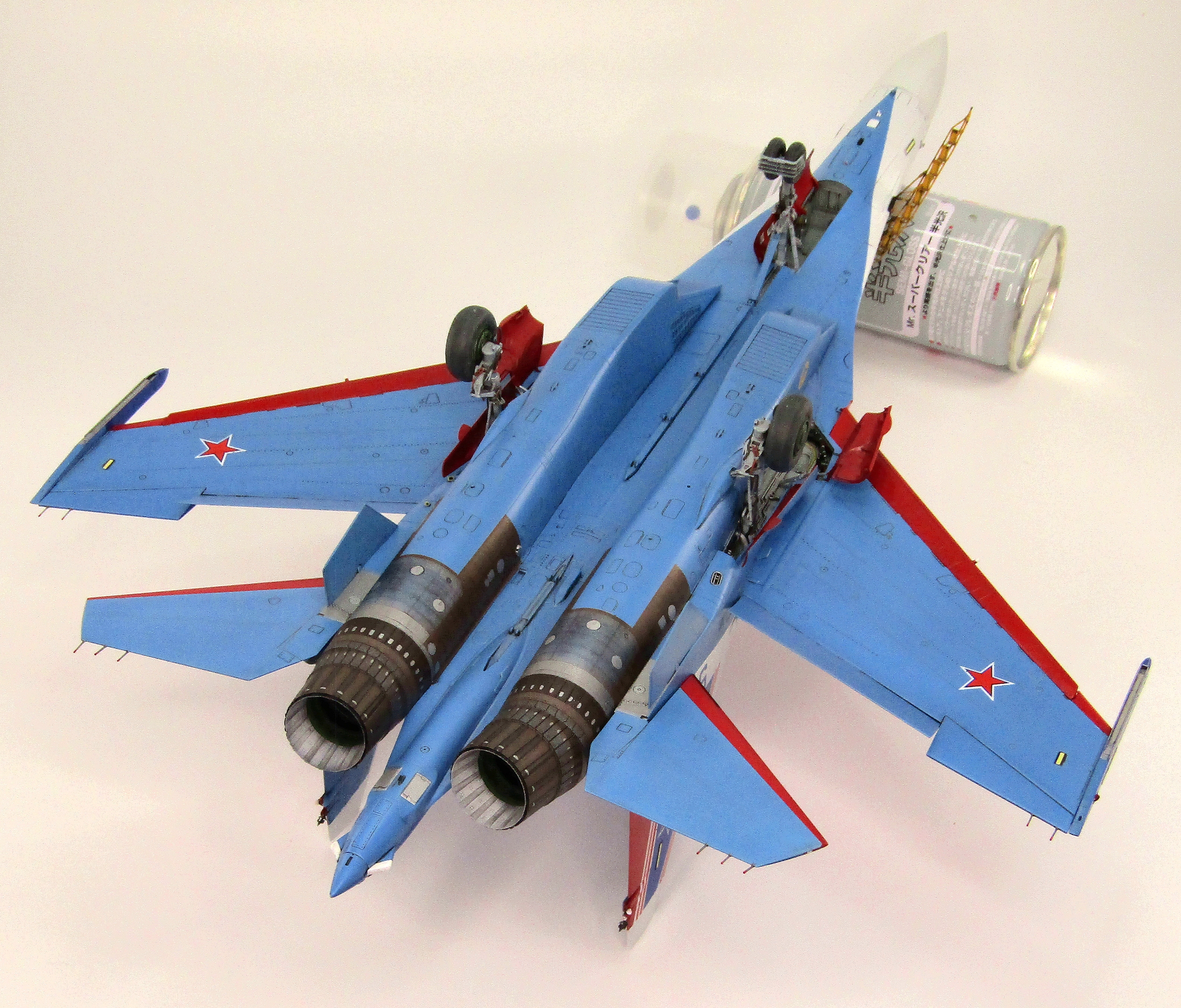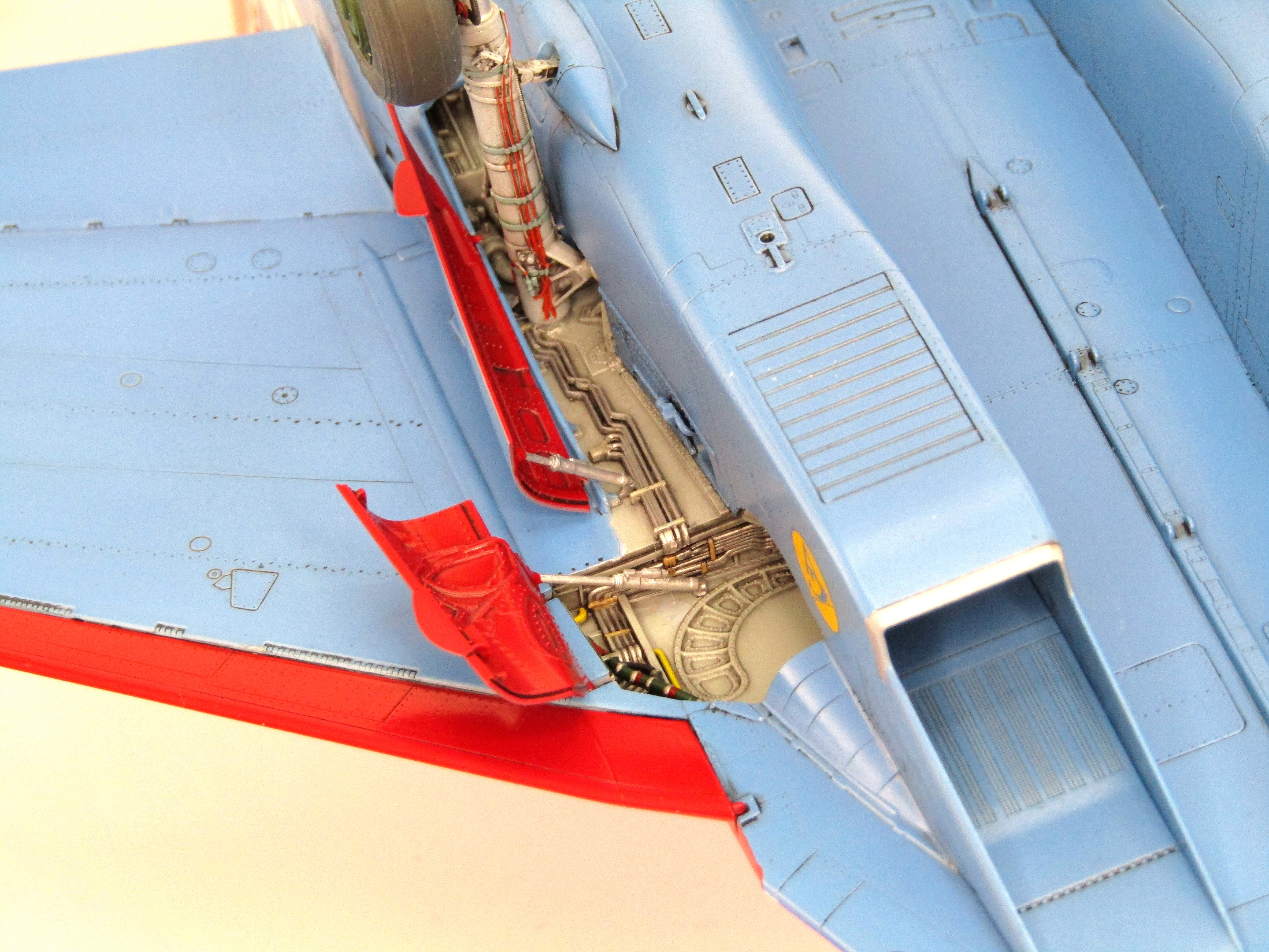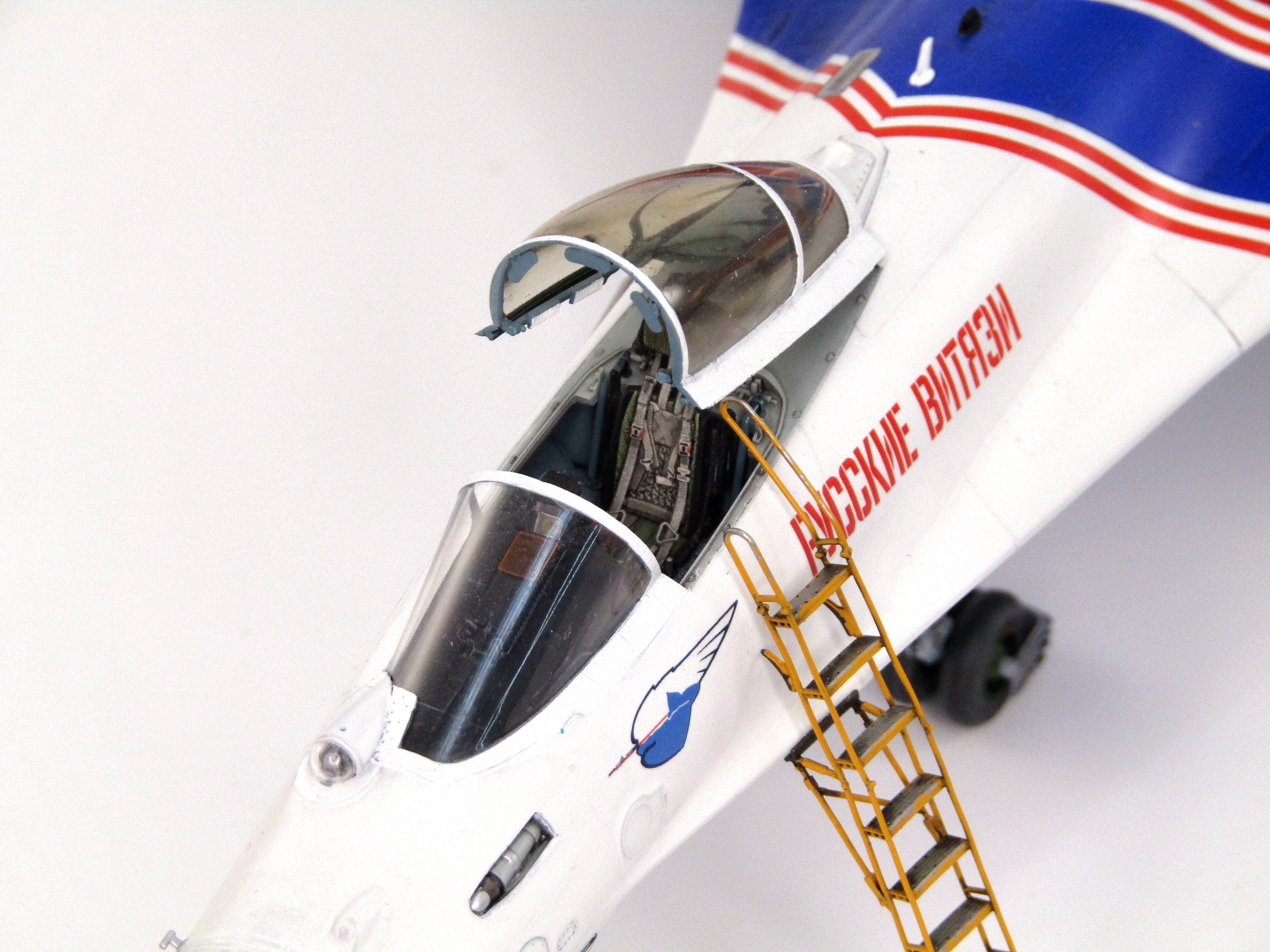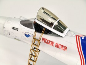 Приветствую! Представляю модель одного из наших реактивных витязей в 48-м масштабе от GWH. Модель сама по себе отличная, никаких нареканий при сборке не возникло. Из дополнений использовал 3d печатанные сопла, катапультное кресло с 3d декалями, стойки шасси, стремянку. Приборы в кабинете лётчика нанёс родные декальные, фонарь тонировал Ганзовским коричневым GX-лаком. Грунтовка и покраска Ганзовской химией (грунт, краски и лаки). Ливрею маскировал при помощи изкоробочных масок. Смывки серая и чёрная от Тамии. Приятного просмотра...