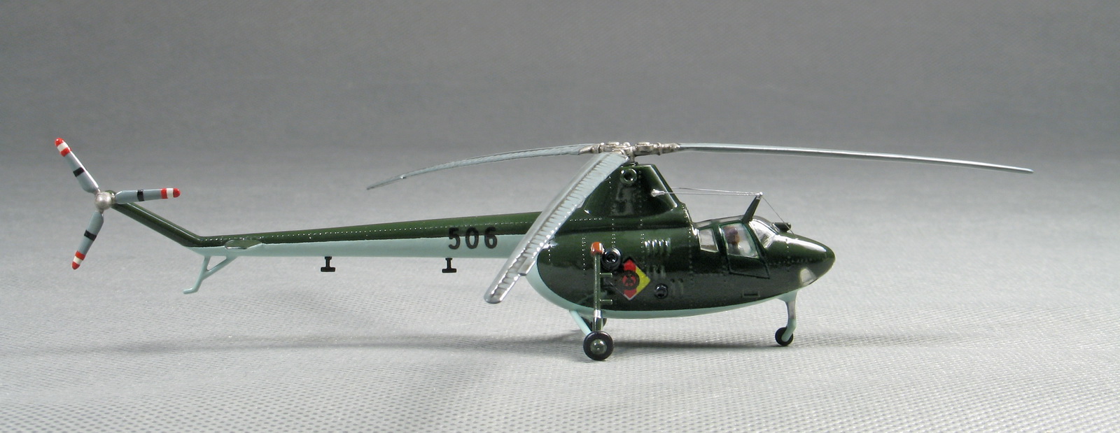 С учётом условности соответствия пластикартовских комплектов их реальным прототипам, данная модель наиболее напоминает модификацию Ми-1А, правда без характерной "курносости" передней части и с трапециевидными лопастями несущего винта.