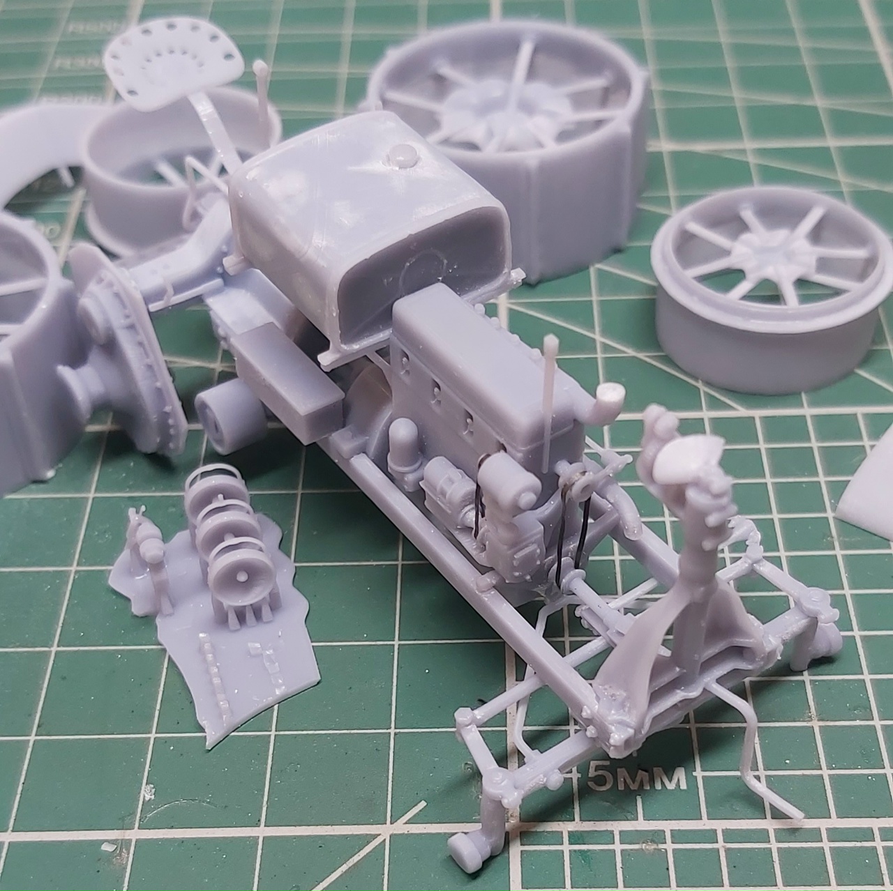 Трактор обр.1936 года, поэтому поставил радиатор от завода "Красный Путиловец" , ВТЗшный тоже в коробочке на выбор имеется, но Владимирские выпускались позже. Ведерко и инструментальный ящик идут приятным бонусом.