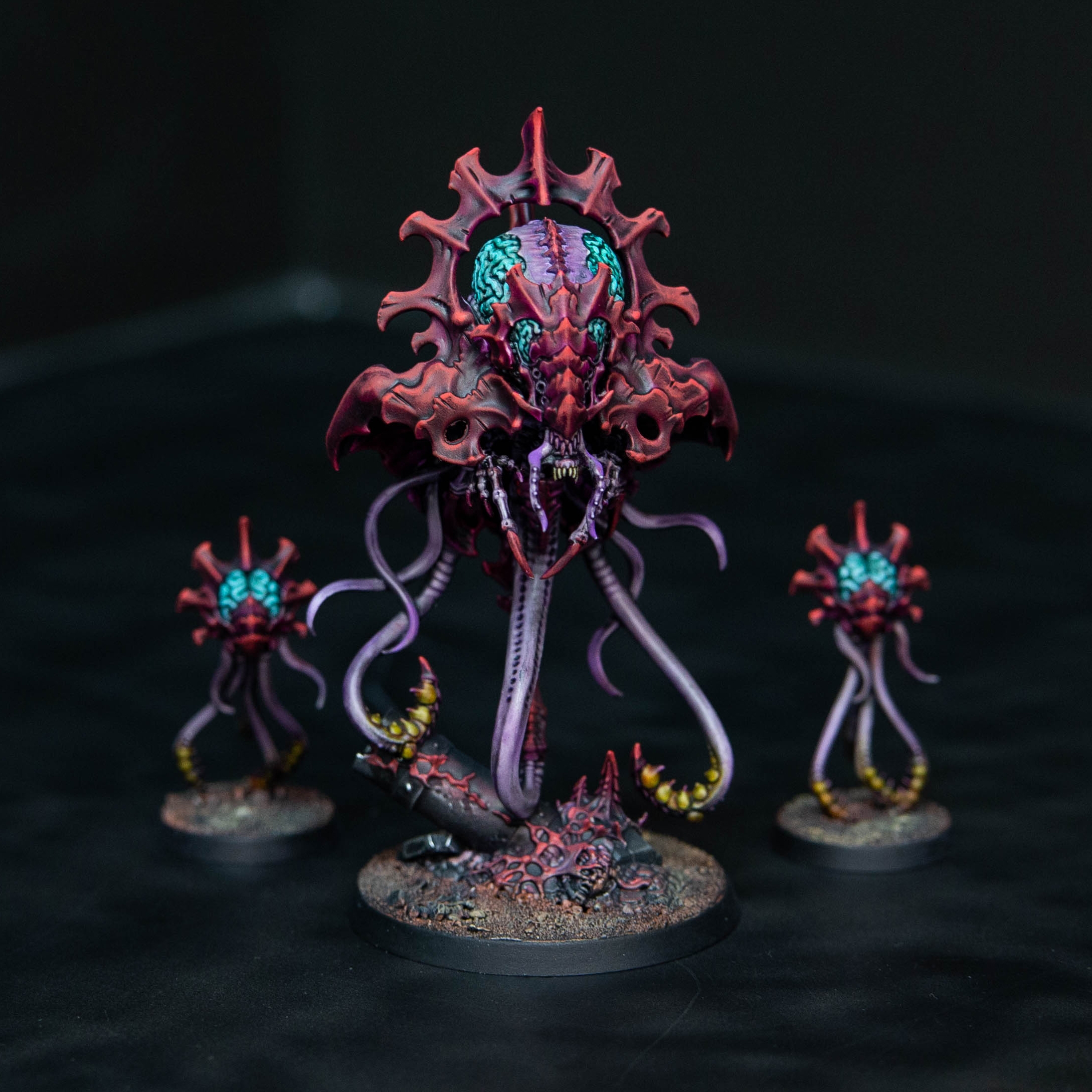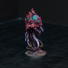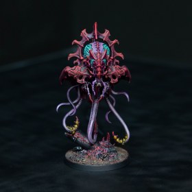 Нейротиран — это парящее воплощение кошмара, чужеродный разум, облаченный в хитин и пульсирующую плоть, чье присутствие разрывает саму ткань реальности. Окутанный мерцающим маревом психической энергии, он величественно дрейфует над полем боя, подобно грозовому облаку, источая удушающую «Тень в Варпе», которая обращает храбрость врагов в первобытный ужас. Его многослойная корона скрывает мощнейший биологический процессор, координирующий действия роя с ледяной эффективностью, а длинные, извивающиеся щупальца готовы в любой миг выпустить каскад психических молний, выжигающих души тех, кто посмел взглянуть в бездну его безжалостных глаз.