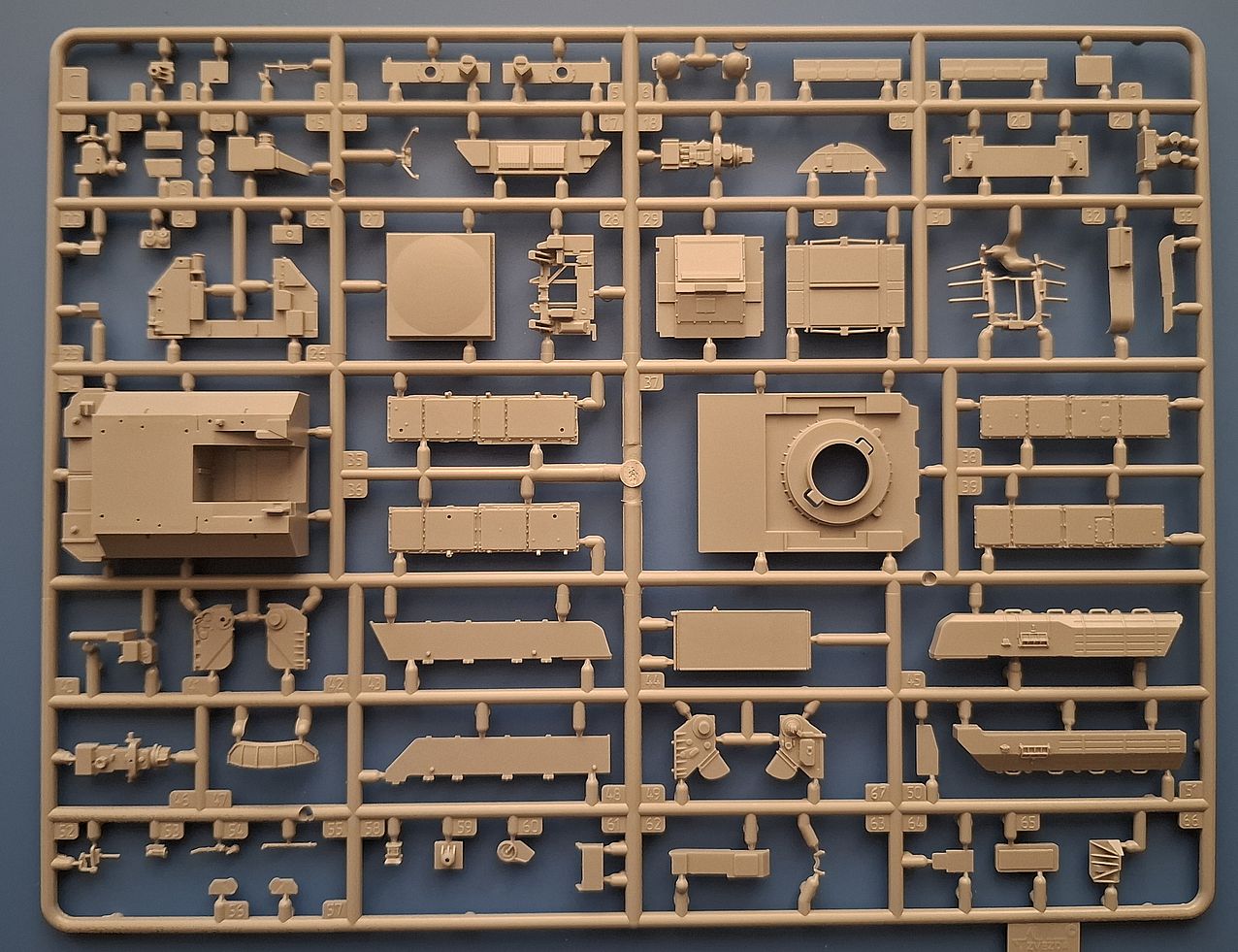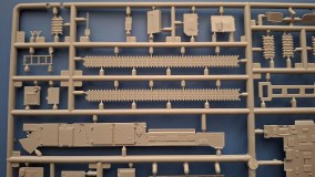 Небольшой набор всего четыре литника из серого пластика детали отлиты очень качественно, отличная детализация . полу наборные траки, нижняя часть корпуса дана отдельной деталью, два варианта сборки транспортный и так сказать рабочий