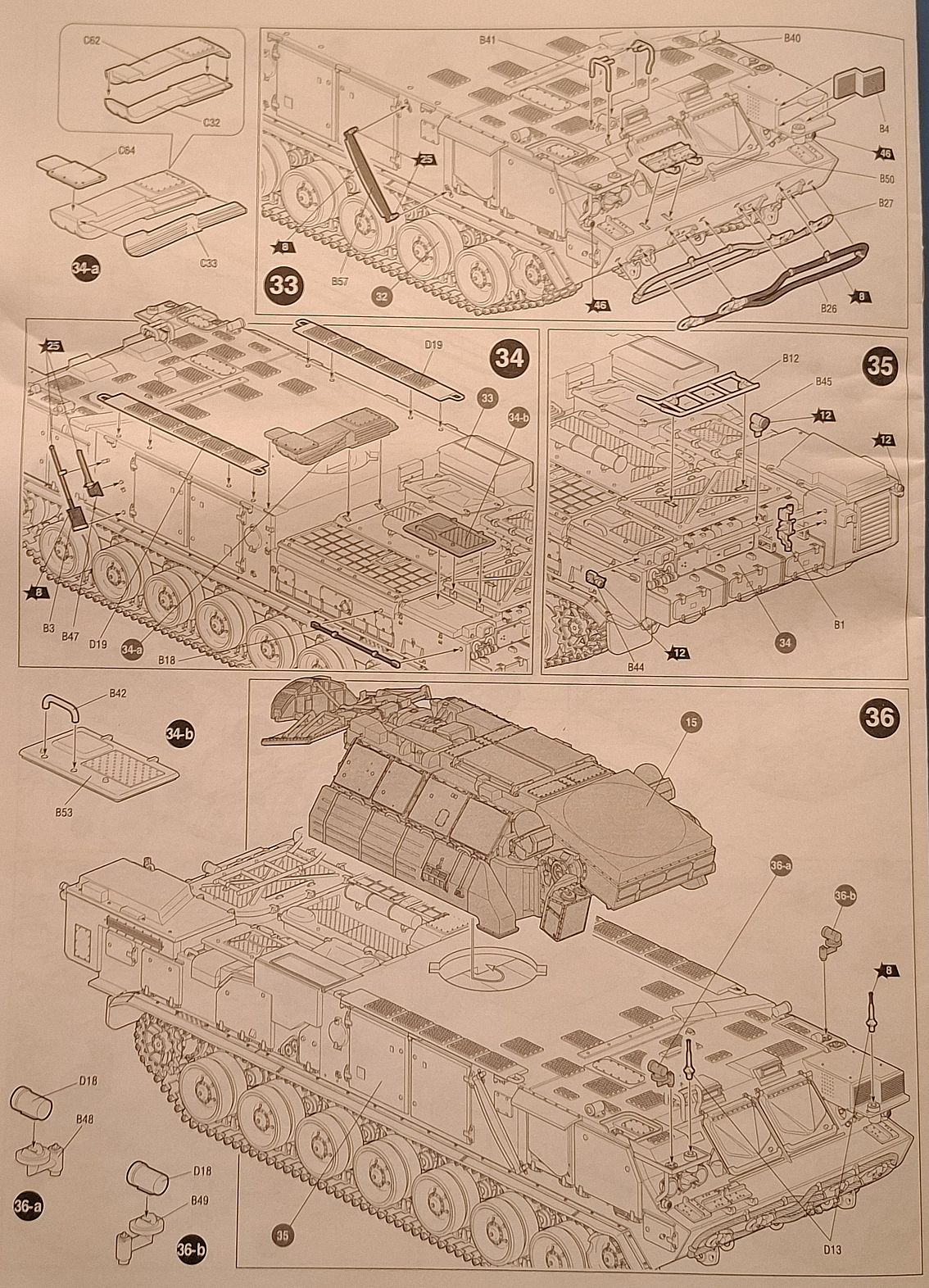 Стандартная черно-белая инструкция в виде книжки 36 позиций по сборке ( где все позиции по сборке друг на друге) и описанием прототипа на первой странице