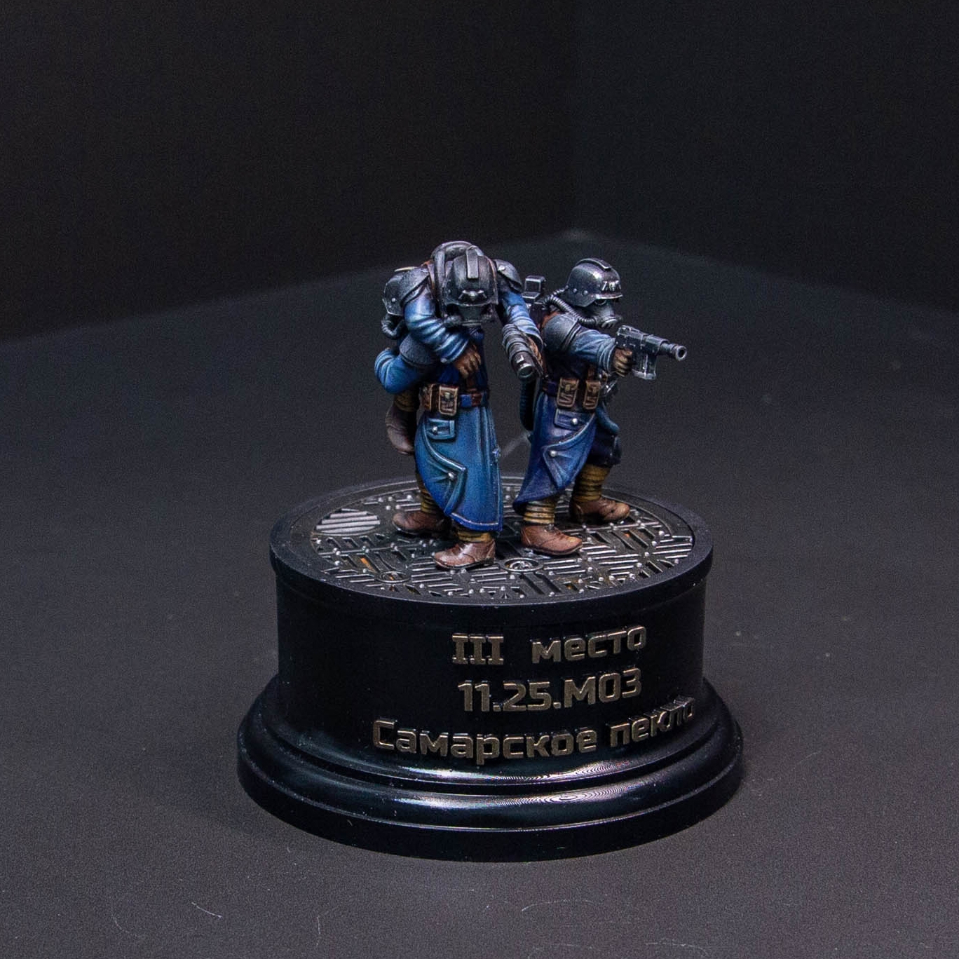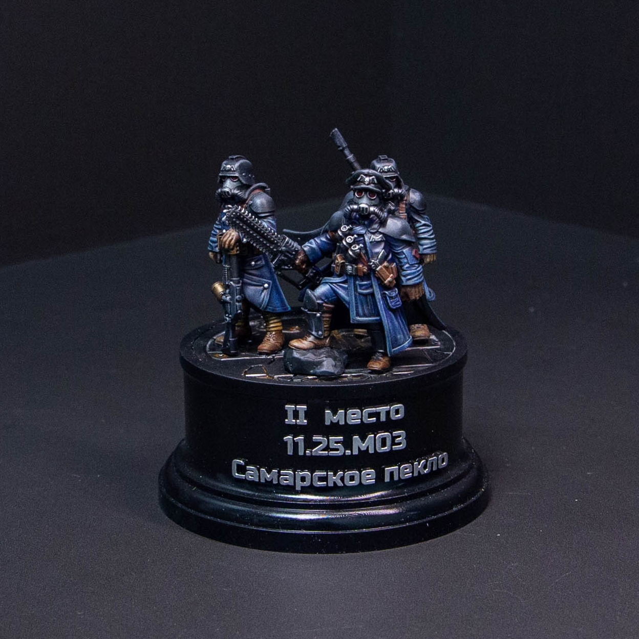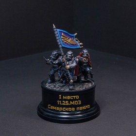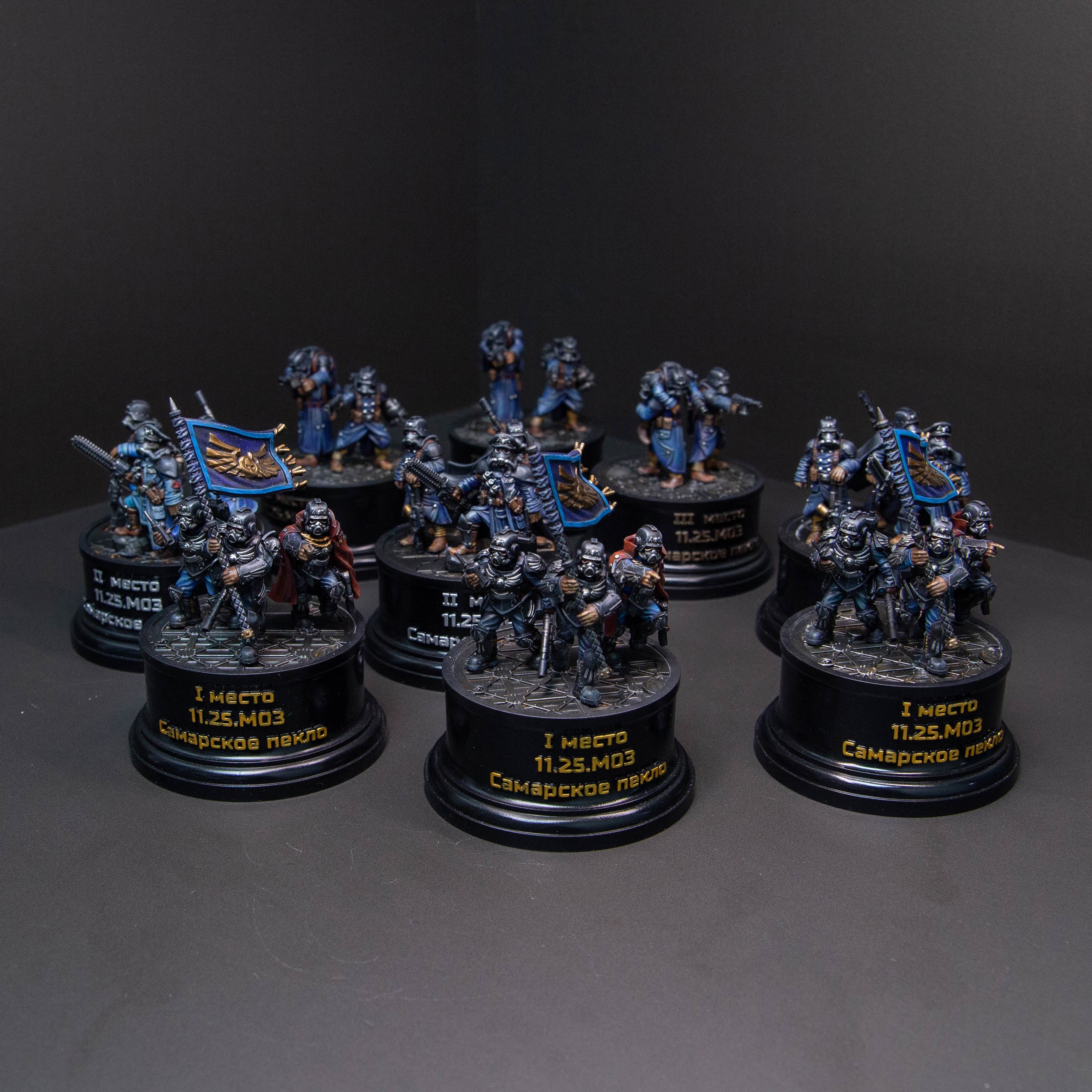 В прошлом году довелось мне разработать и покрасить призы к Самарскому турниру по Вархаммеру. И не просто для турнира а для командного из 3х человек. Так что за каждое место по три приза. И на каждом по три фигурки. Персонажами для призов я выбрал моих любимых Криговцев. Много работы было и потом еще монтажа. И вот что получилось.