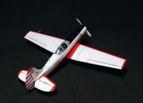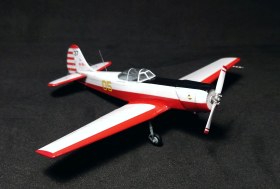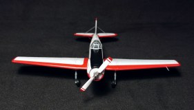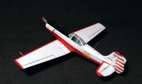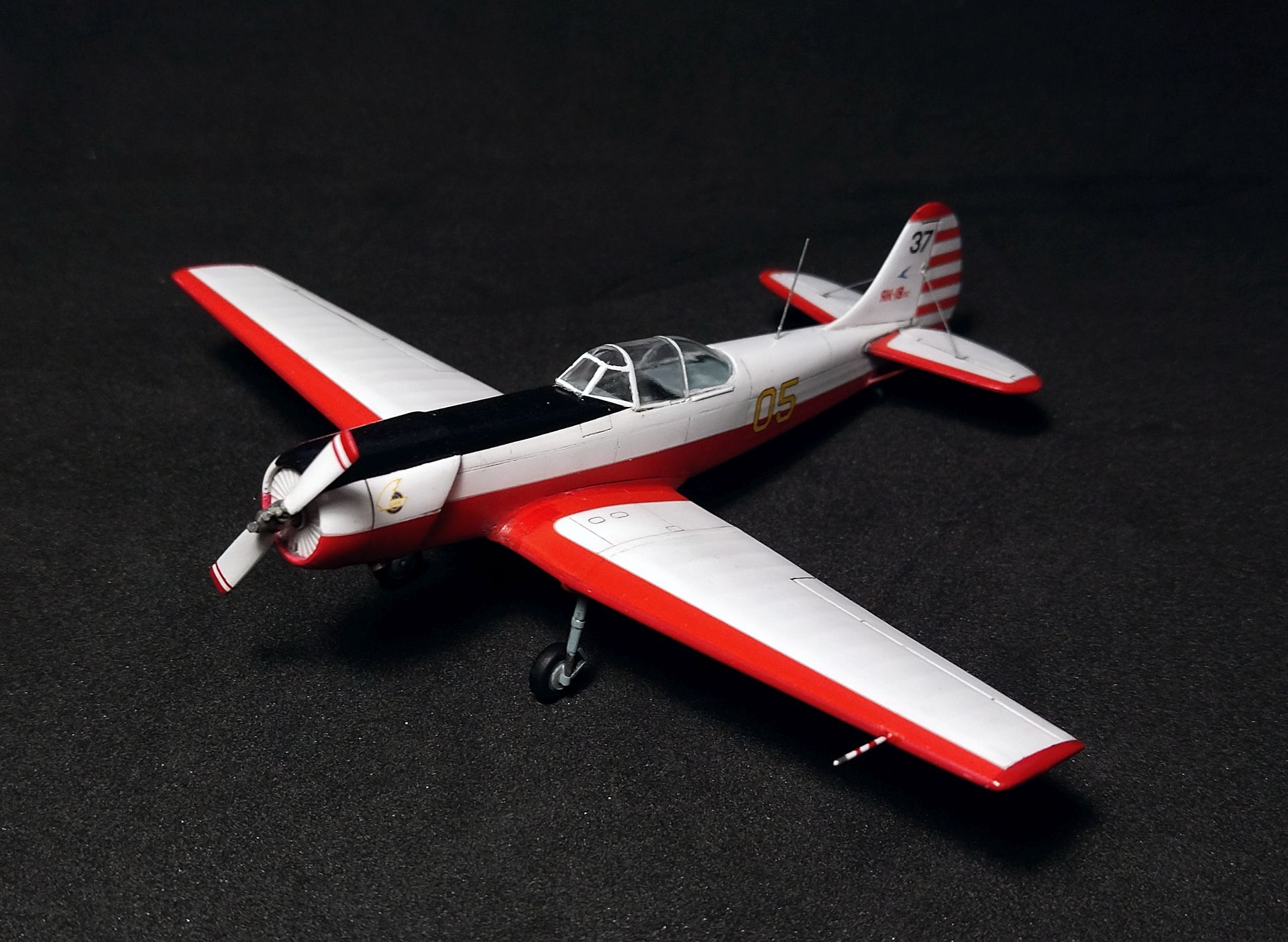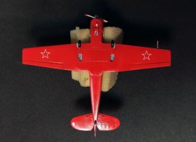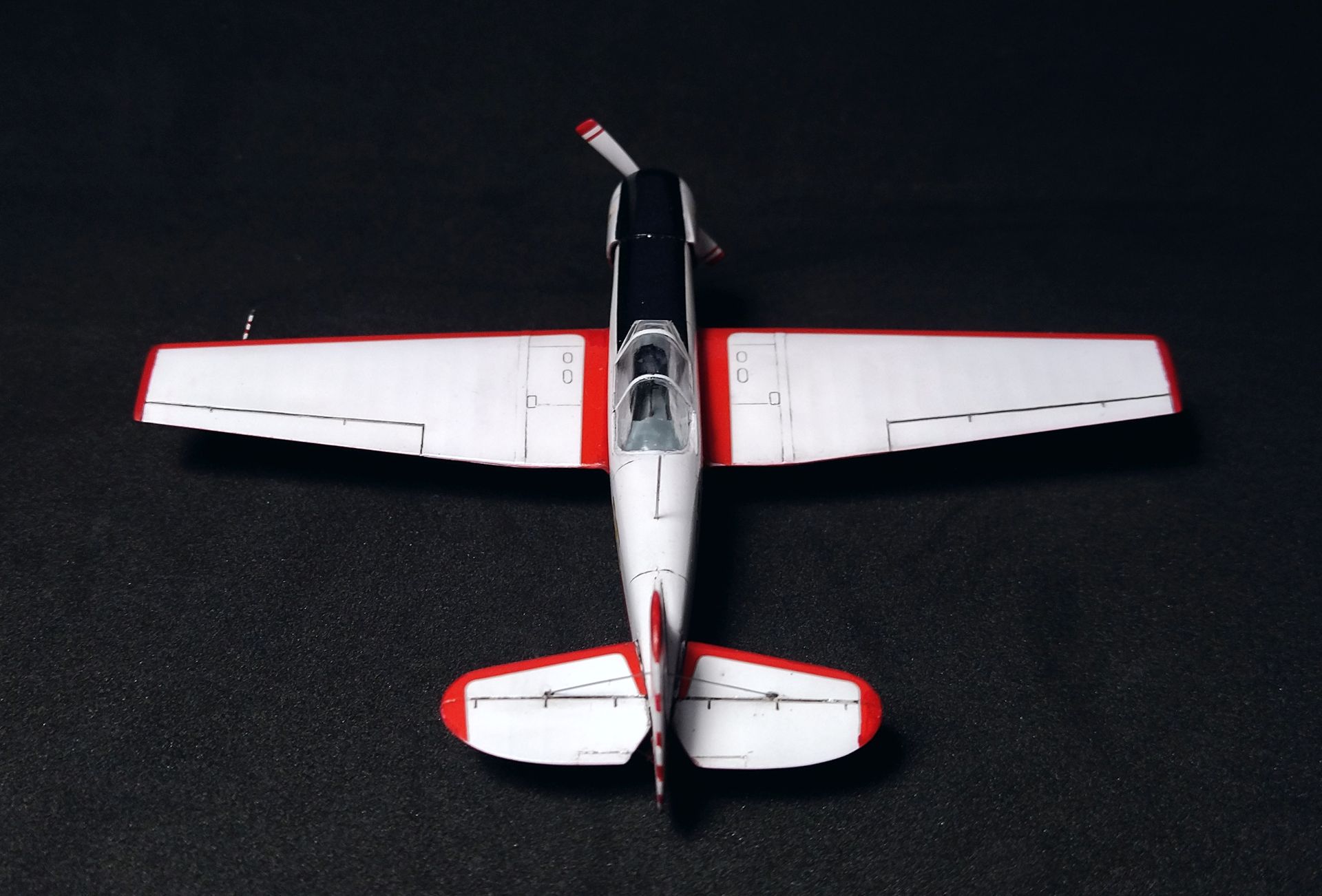 Всем привет. Маленький спортивный самолетик. Типичные Амодел, плохонький пластик, замыленный и с пропадающей расшивкой. Которая еще больше пропадает, когда приходиться зачищать поверхности от дефектов. Слава богу её там совсем немного. В принципе собирается быстро. Дольше всего зачищать и шпаклевать швы. Ну и подгонять все друг к другу. Главное иметь перед глазами картинки. С этим проблемы, почему то фоток крайне мало. Но удалось разглядеть расчалки на хвостовом оперении. Потом еще и увидел их на схеме окраски. В инструкции ни слова. Их сделал, заодно, вместо кривых пластиковых, сделал основные из латунных прутков. Из этого же и ПВД. Попытался изобразить компенсаторы на втулке винта. И сеточку на радиаторе, по дефолту там пластиковый квадратик с наметкой этой сетки. Он и потерялся в процессе. Долго подгонял фонарь кабины. Обводы совсем не совпадали с посадочным местом. Пластик фонаря в целом прозрачен, но поверхность не ровная, поэтому на фото иногда впечатление, что мутный (свет бликует неравномерно).