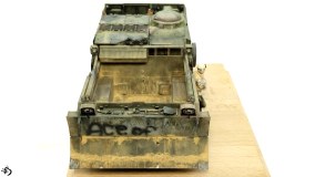 От себя добавил на ковш надпись отсылающую на небезызвестную песню, небезызвестной группы Motorhead. Правда после, все это закрыл пигментами. Кстати о них. Так как машинка делалась на период войны в Ираке решил все таки использовать под это более подходящую палитру химии для погодинга, но на горе мне из всей подходящей химозы был только сухой пигмент Middle East Dust. С сухими пигментами я не работал очень давно, поэтому было немного непривычно, но надеюсь результат получился не слишком ужасным, по крайней мере меня он более менее но устроил.