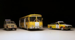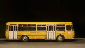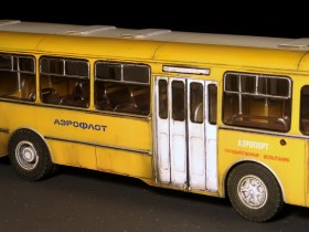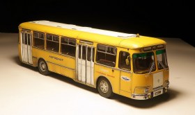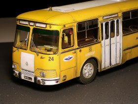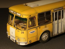 Обычный ЛИАЗ 677 я найти не смог нигде, а его страсть как хотелось. Ну и взял Перронную версию и покрасил его в маршрутные цвета, немного подшаманив морду и убрав оттуда хром с решётки, добавив резиновые клыки. И есть у этого кита глобальный косяк, о котором надо знать и помнить о нём постоянно, о чём ниже. Оригинальная окраска с бордовым поясом по остеклению смотрится ужасно и я даже и не думал о её воспроизведении. Как и целиком хромированная экспортная решётка... Но прямоугольные фары уже никуда не денешь))) В целом, впечатления положительные, если бы не кузов винтом, неправильные ступицы колёс на осях внутри, неверная высота отливок под винты и всякая мелочь в виде отсутствия проработки кабины и декалей в неё. Ну и фиксаторы окон очень сильно видны на дверных проёмах, а окна в проёмах с видимыми щелями. Копию перронного из этого набора сделать невозможно, т.к. в оригинале там всего десять сидячих мест и он традиционно рассчитан на преобладание стоячих паксов, но авторы сего проекта этот момент прощёлкали и дали ему обычный рейсовый салон на 26 мест, да и тот с ошибкой по переднему левому ряду, где обычно разносмотрящая спарка на арке колеса, а не диван как справа. Так что, хоть и было их всего четыре штуки и Аэрофлот от них открестился через год, никому не известно, куда они делись, а надпись "Государственные испытания" и номера "проба" могут оправдать любой каприз. Покрасил я, значит, нутро и кузов и решил прикинуть с колёсами уже под финиш... И вот тут вся кетайская костромская кривизна заиграла новыми красками. Кит косячный и при состыковке верха и низа весь этот глобальный косяк и вылез. Как я уже говорил - сам кузов «винтом» и смолу не выправить нагревом, память у неё как у Вассермана. Немного выровнять жопу можно, сточив левый задний отлив винта, но он даже не понадобился. Если сажать раму с салоном по предлагаемым размерам, то получится дагестанская пузотёрка, т.к. верхние кромки колёс уйдут далеко вглубь. Чтобы это сделать хоть как-то смотрибль, надо сначала привинтить морду, потом через шайбы между полом и кузовом привинтить середину, а потом вытащить жопу и залить снизу циакрином по кромкам дверей и сжать на минуту. Вот тогда у Фантомаса будет приемлемая осадка. Но это только начало! Отверстия под оси колёс имеют чудовищный люфт и оставить их подвижными без мазы, их надо выставить в вывешенное положение и капнуть циакрин на ступицы, тогда морда станет не как у потасканного умирающего маршрутного Лиаза, а намного приятнее. С задним мостом всё очень грустно: люфты и осевые и радиальные и одно неверное движение превращает автобус в убожество! Люфты по оси с максимально вытянутыми ступицами на кончиках осей 4мм и разнести их так, чтобы слева и справа было приемлемо -невозможно. Ищите более длинную ось, или реально фиксируйте клеем родную - в оригинале задние колёса полностью видны и имеют максимальный вылет почти вровень с плоскостью борта.